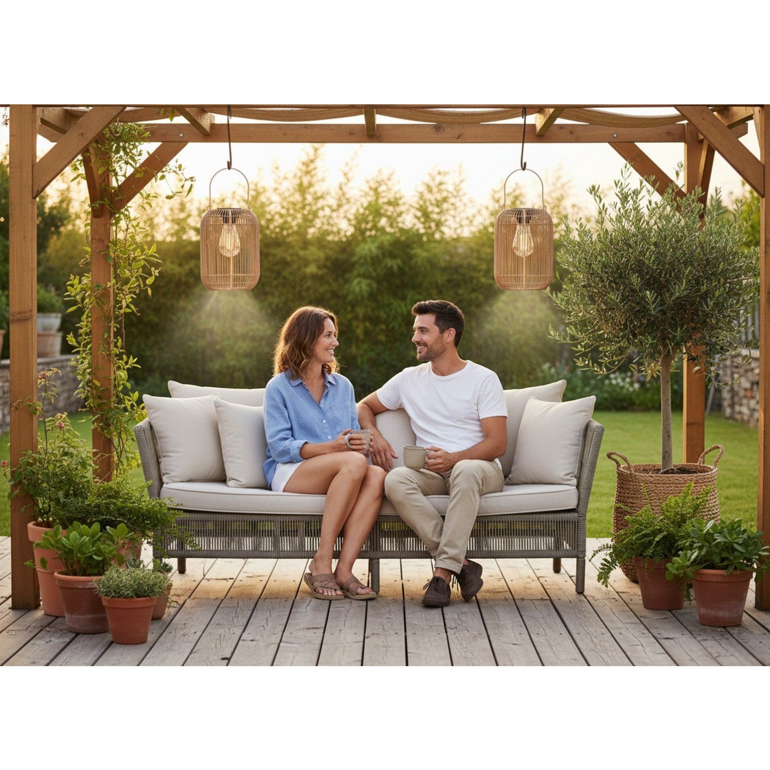 Благодаря встроенной солнечной панели фонарь автоматически загорается после наступления сумерек, создавая теплую атмосферу. Коричневая отделка и ажурный узор добавляют ему шарма и позволяют отлично сочетаться с зеленью.