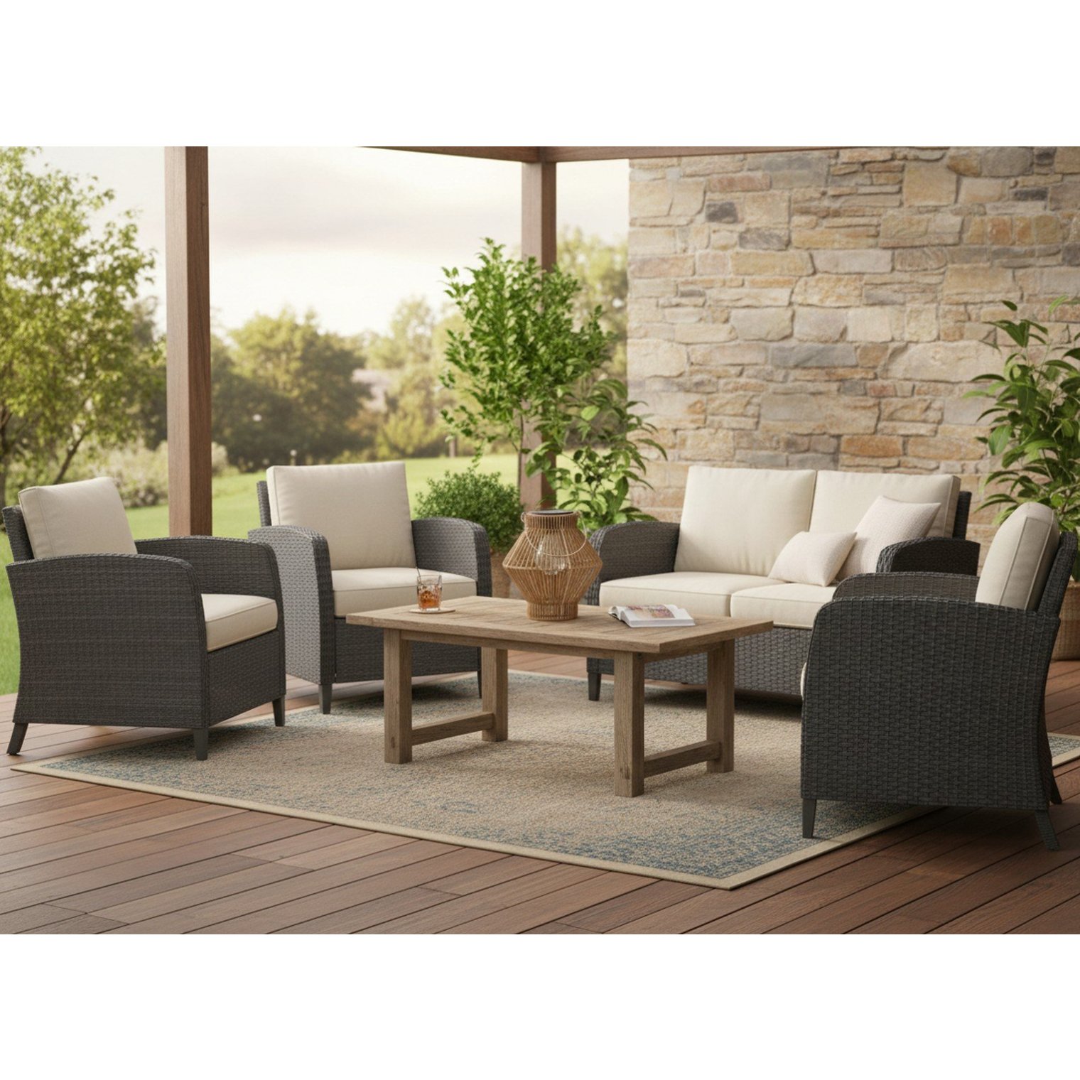 - Спокойный коричневый цвет — идеальный для сада и террасы