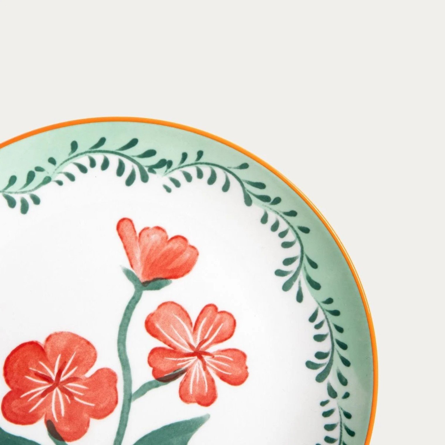Десертная тарелка LIMK диаметром 20 см сочетает в себе классическую форму и изящный цветочный узор. Красный цветочный мотив придает ей свежий, декоративный характер, делая ее прекрасным украшением стола как для повседневной носки, так и для особых случаев.