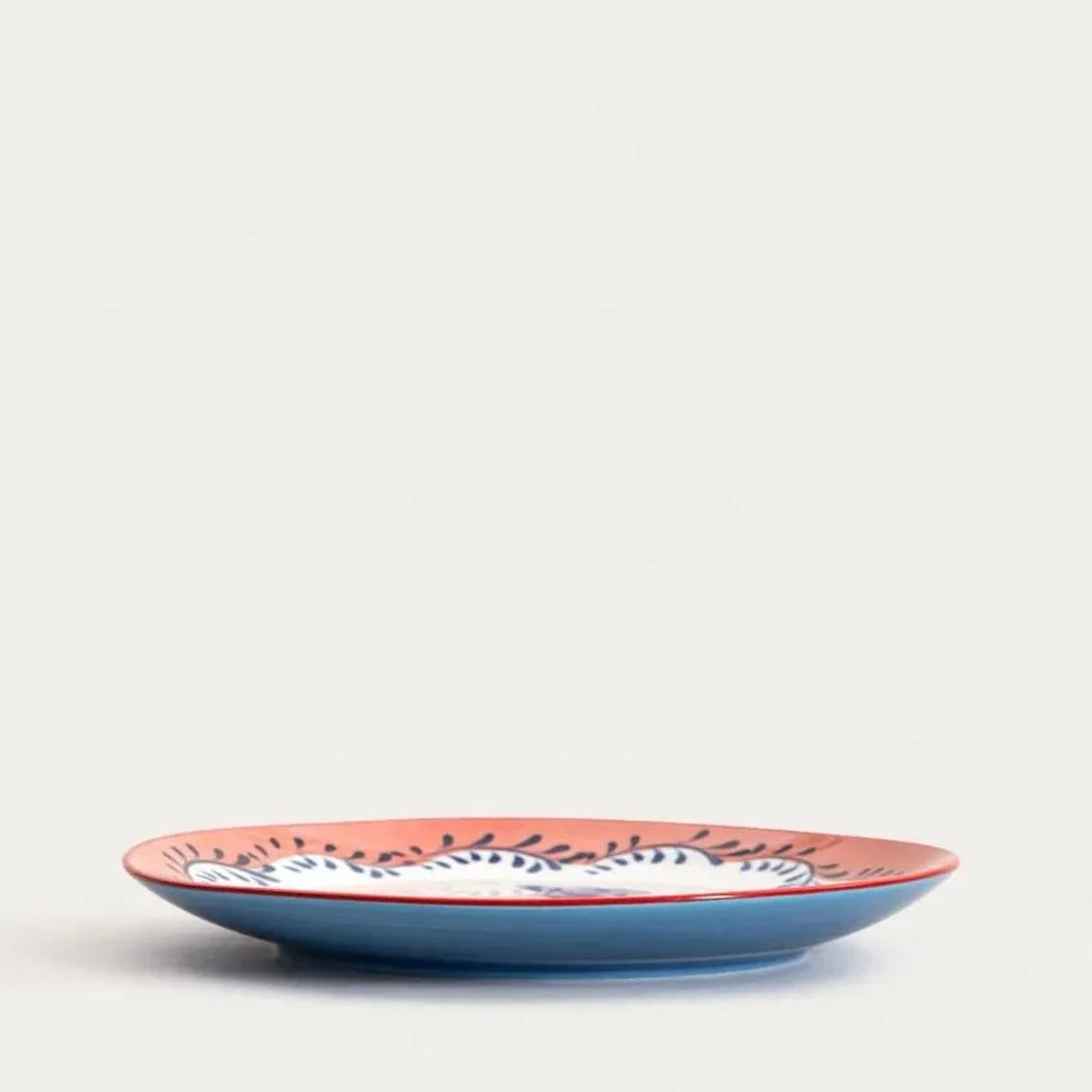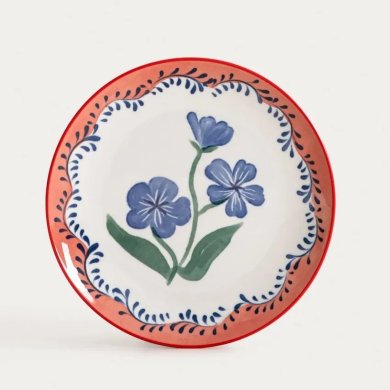 Тарелка LIMK очаровывает своим изящным узором и гармоничными цветами. Синие цветы на светлом фоне вызывают ассоциации со свежестью и спокойствием, а красная кайма добавляет выразительный акцент. Эта деталь превращает даже короткий перерыв на десерт в маленький ритуал удовольствия.