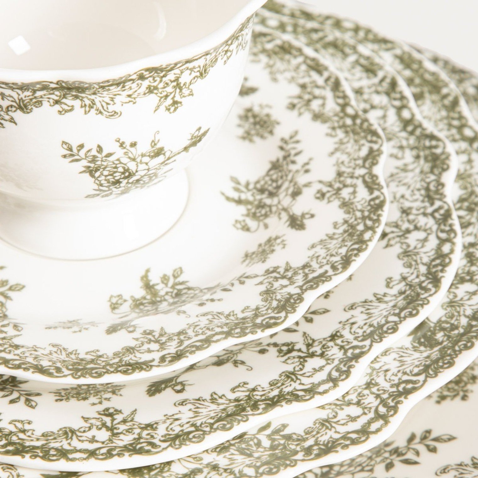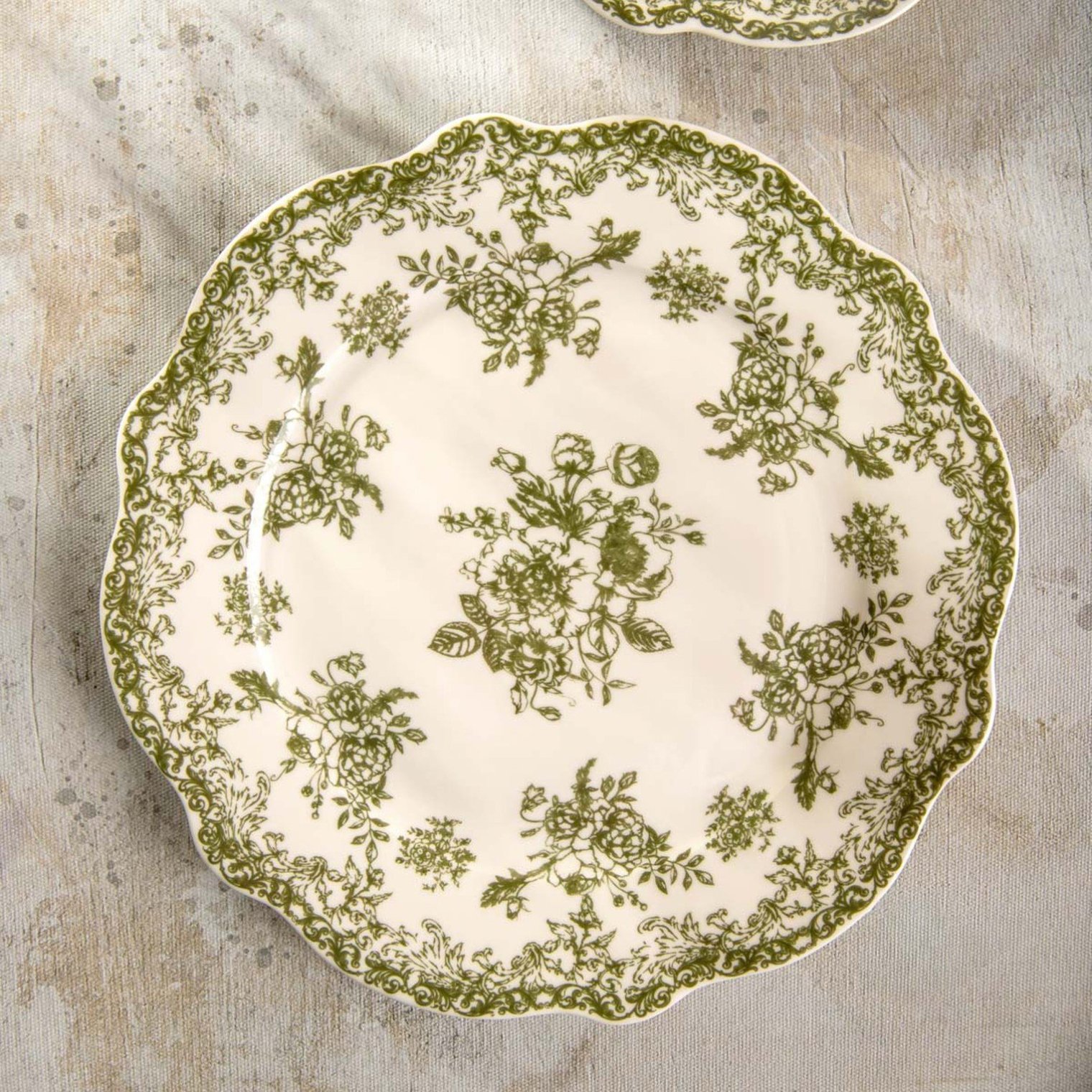 Тарелка LOURRY прекрасно сочетается с другими элементами коллекции, создавая гармоничную и эффектную сервировку стола. Зеленый цветочный узор добавляет свежести и легкости, делая ее подходящей как для классических, так и для современных интерьеров. Она идеально подходит для встреч с семьей и друзьями.