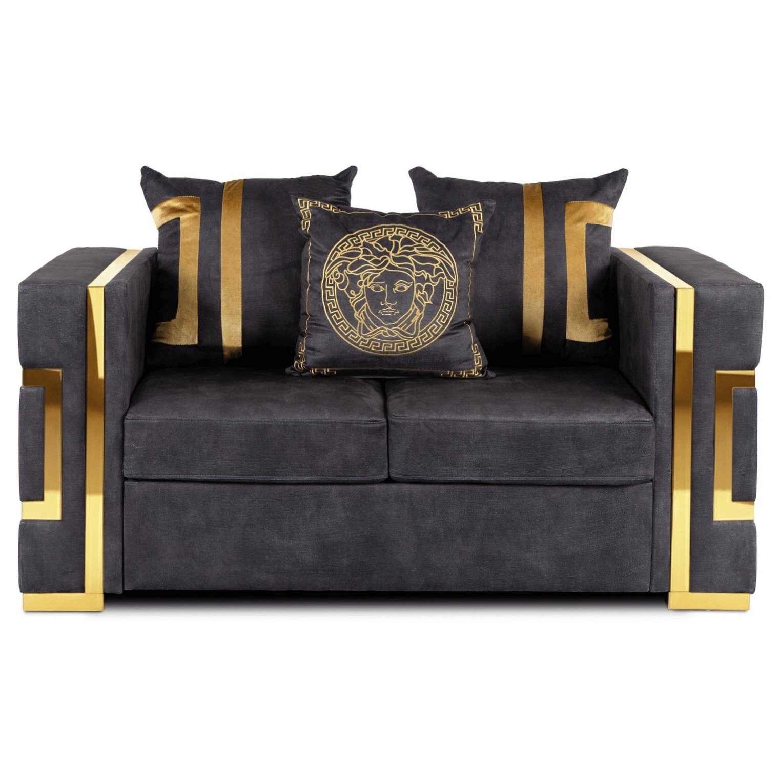 Диван Pallazo 2S — это элегантный, гламурный вариант, созданный для повседневного отдыха в уникальной обстановке. Черная бархатная обивка в сочетании с золотыми акцентами придает ему роскошный вид и делает его неповторимым элементом интерьера.