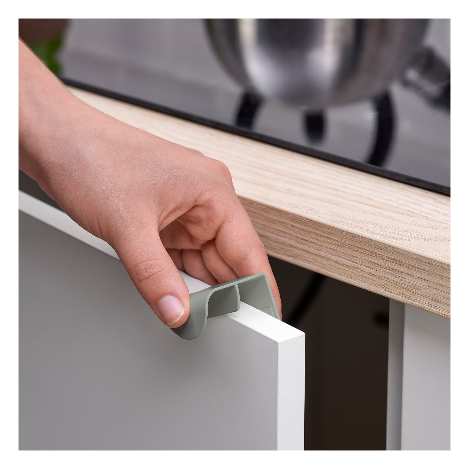 Не нужно сверлить отверстия – просто прикрепите ручку к дверце или передней панели ящика. Ее так же легко снять или установить обратно, не оставляя отверстий.