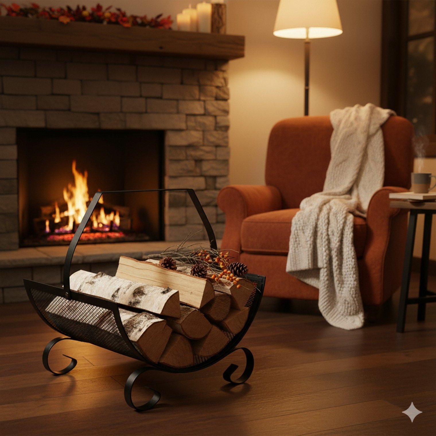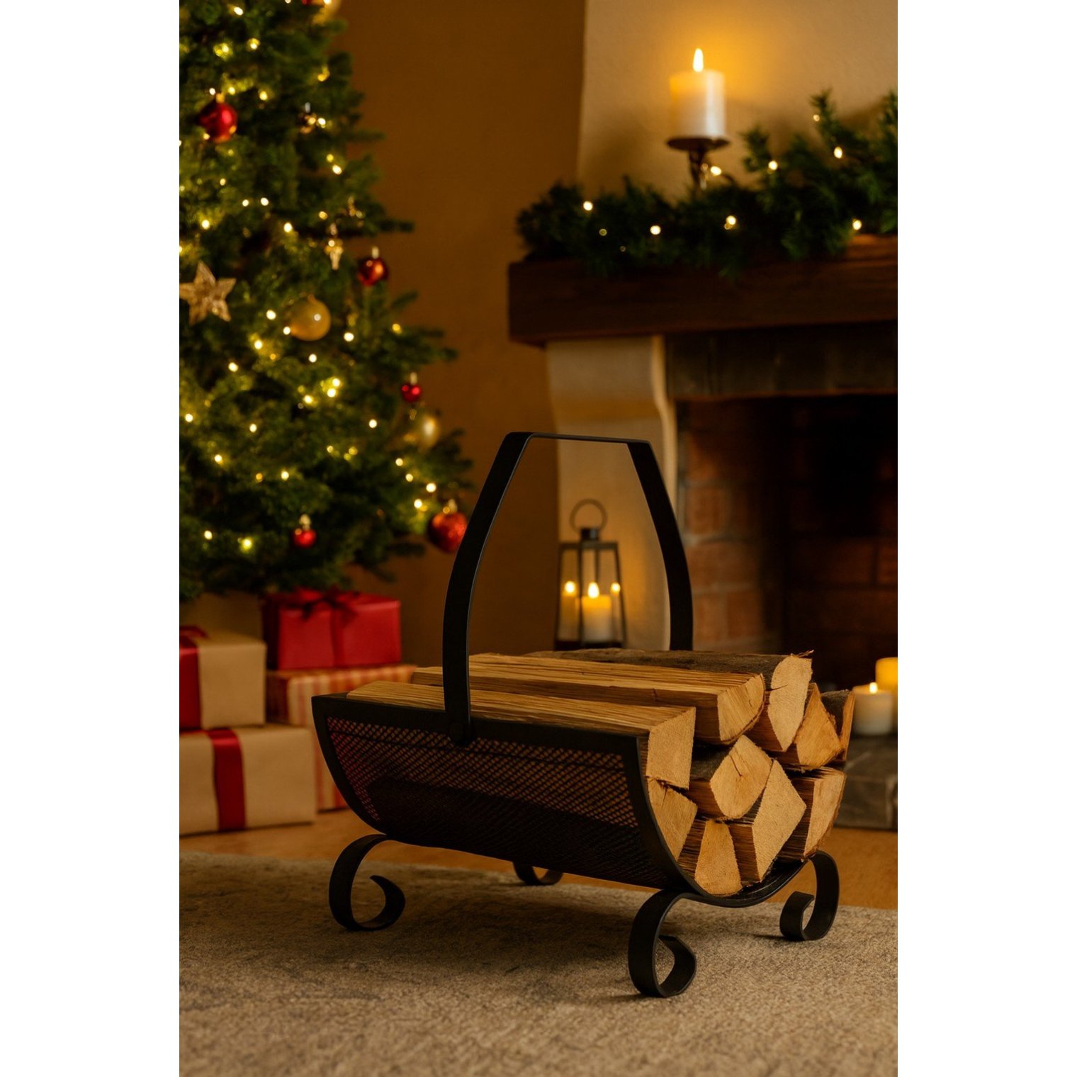 Стабильная конструкция и удобная ручка делают переноску дров проще, чем когда-либо. Это функциональное дополнение, которое не только облегчает организацию, но и красиво смотрится у камина.