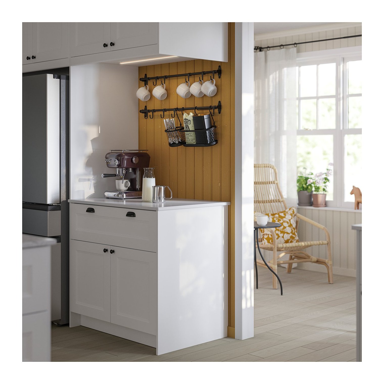 Можно повесить на перила HULTARP с помощью крючков HULTARP или оставить отдельно на столе или подоконнике.