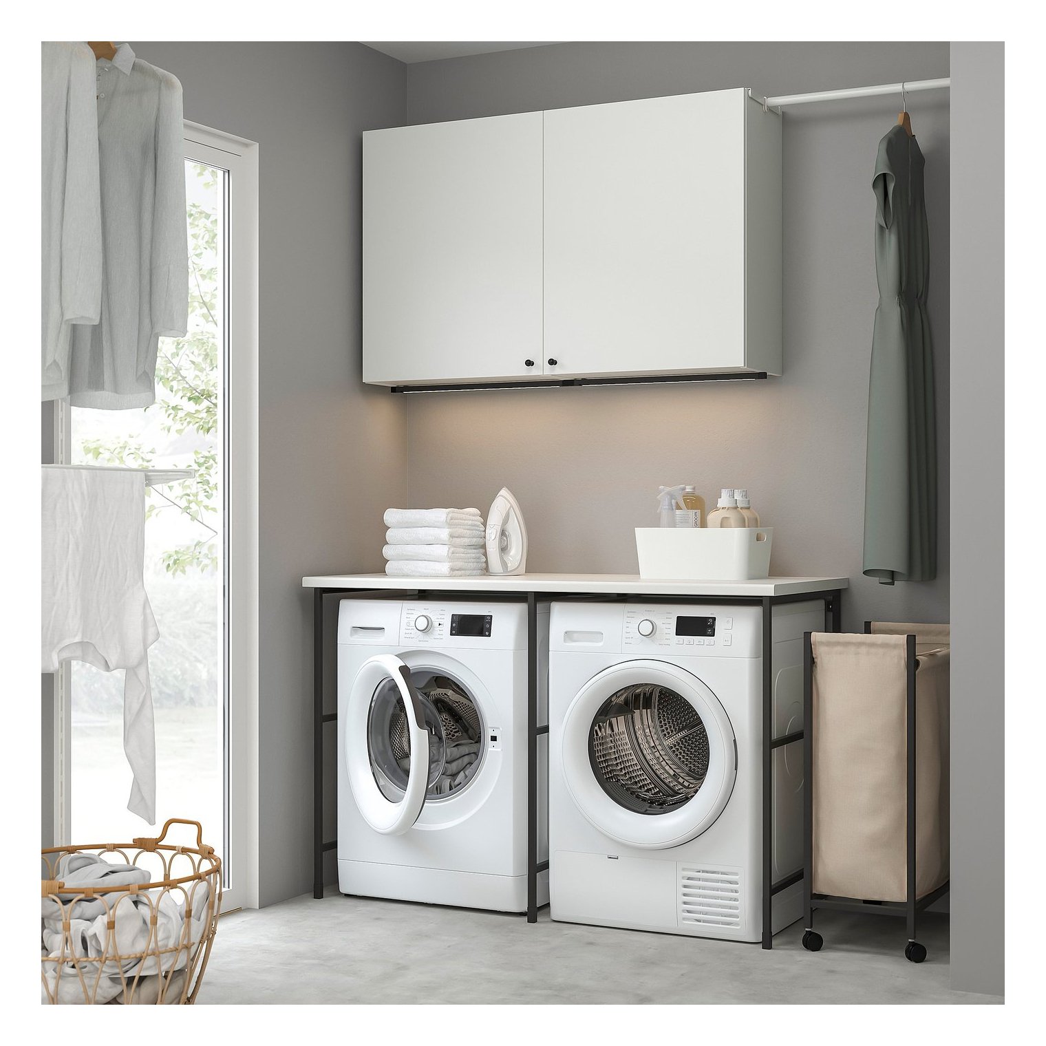Добавьте крючки ENHET, чтобы повесить полотенца, или создайте больше места для хранения с помощью контейнеров SKATTÅN. Продаются отдельно.