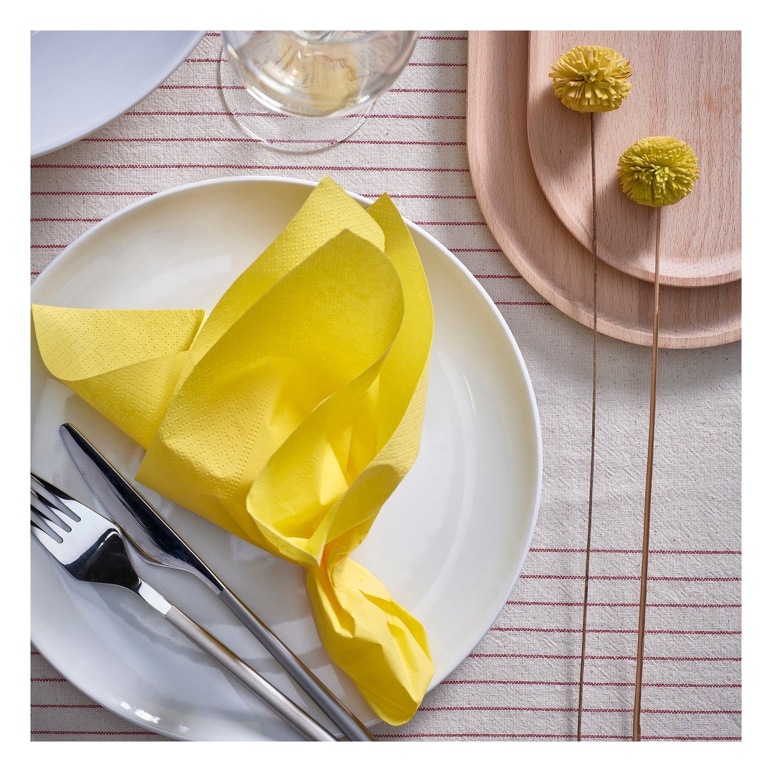 Салфеток много не бывает – в этой упаковке их 50. Почему бы не объединить несколько разных цветов, подобрав их к столовым приборам или сервировать стол немного более креативно?