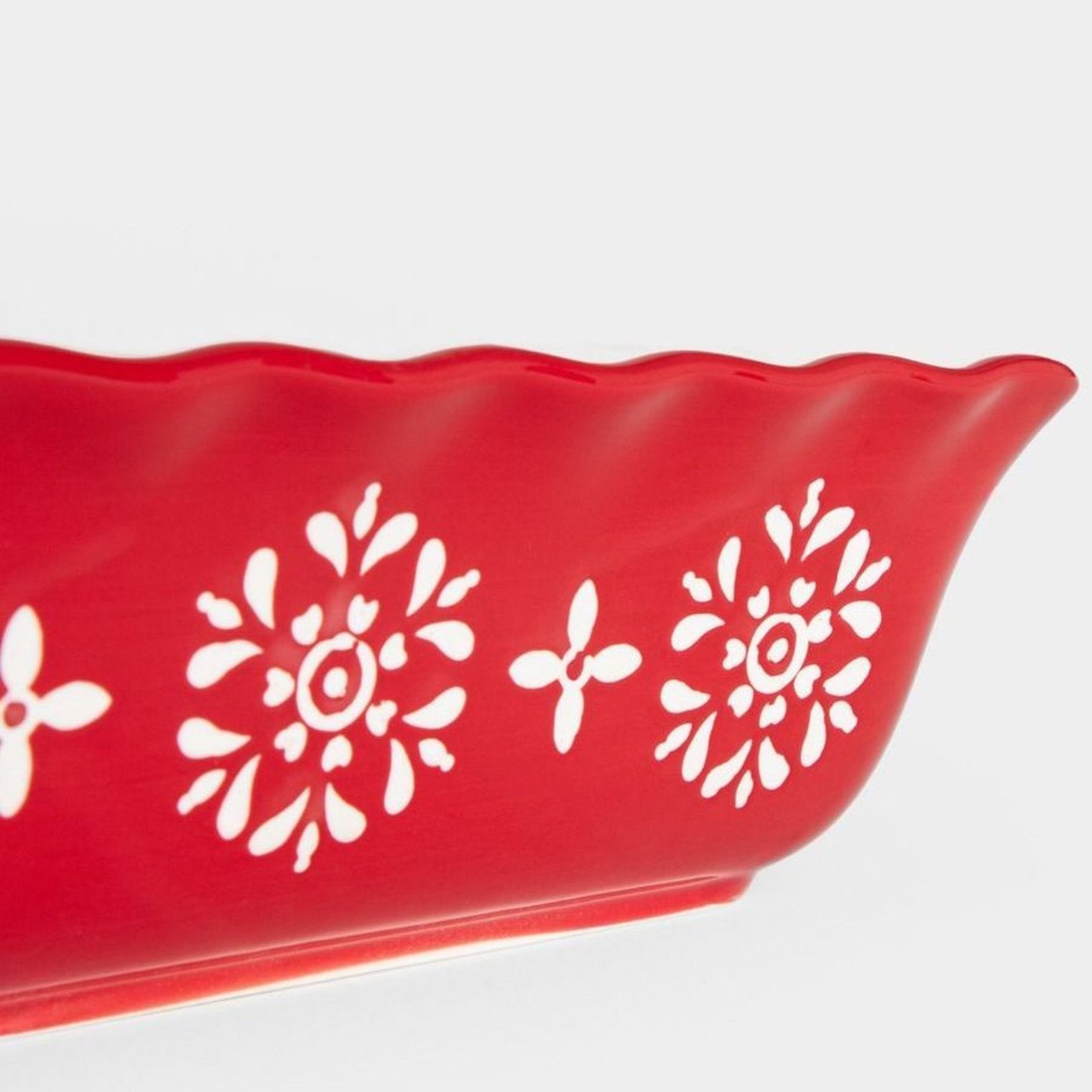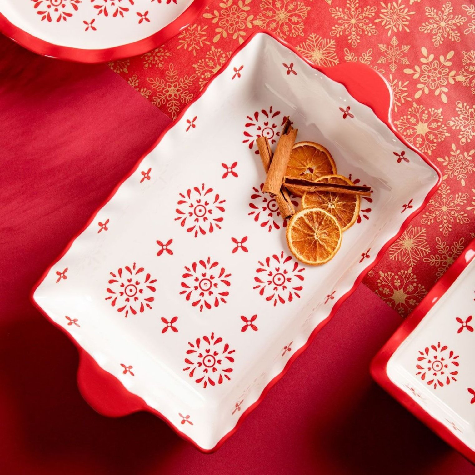 Готовьте любимые блюда в элегантной форме для запекания BAKIN. Её прямоугольная форма и компактные размеры 39 x 22 x 7 см позволяют удобно запекать и сразу подавать на стол. Стильный рисунок с праздничными мотивами добавит очарования любому блюду и гармонично дополнит любой интерьер.
