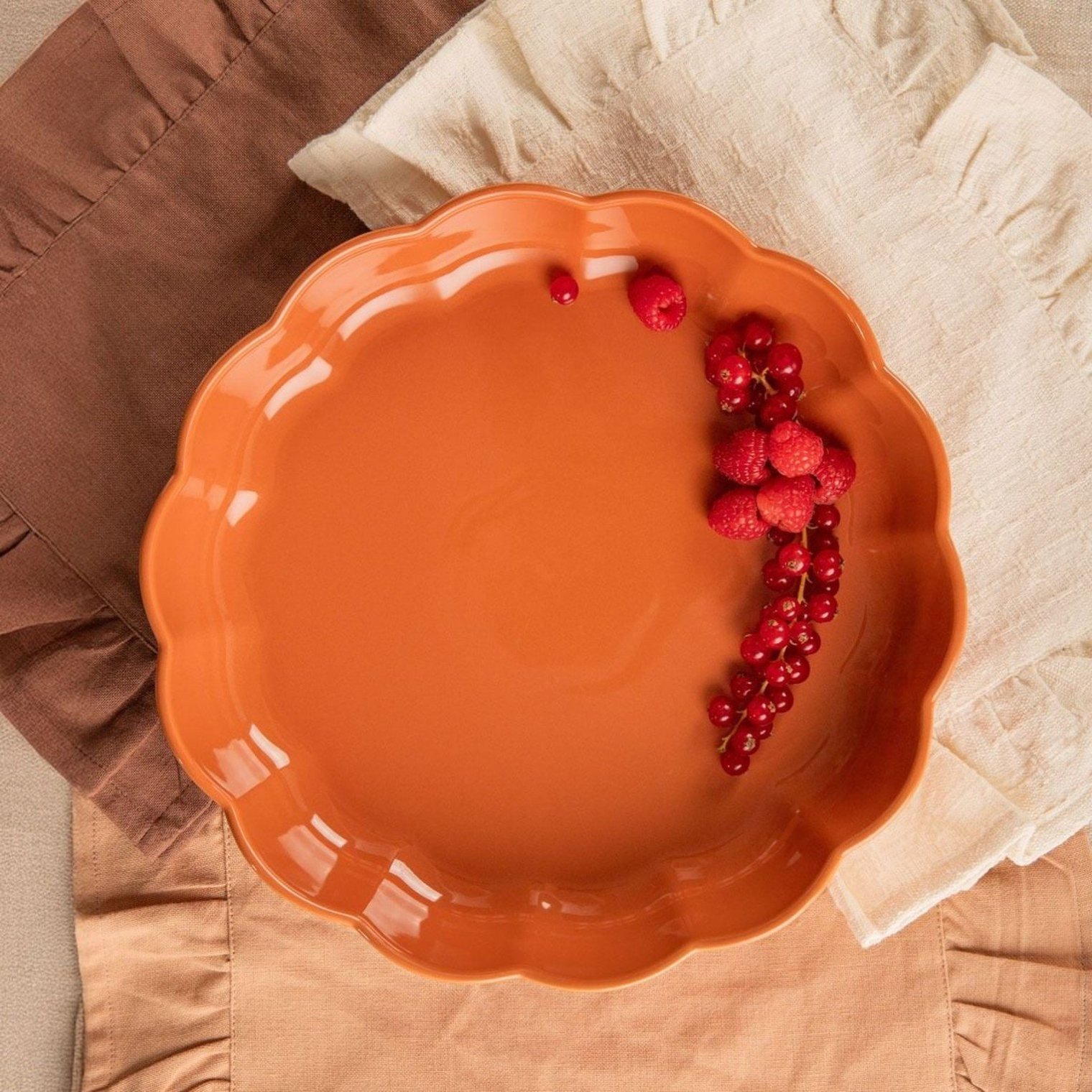 Круглое блюдо BRISA впечатляет своей простой формой и изысканной отделкой. Оно служит прекрасным фоном для подаваемых блюд и добавляет им аппетитности. Волнистый край добавляет декоративный штрих, а теплый оттенок керамики мгновенно создает уютную и располагающую атмосферу на столе.