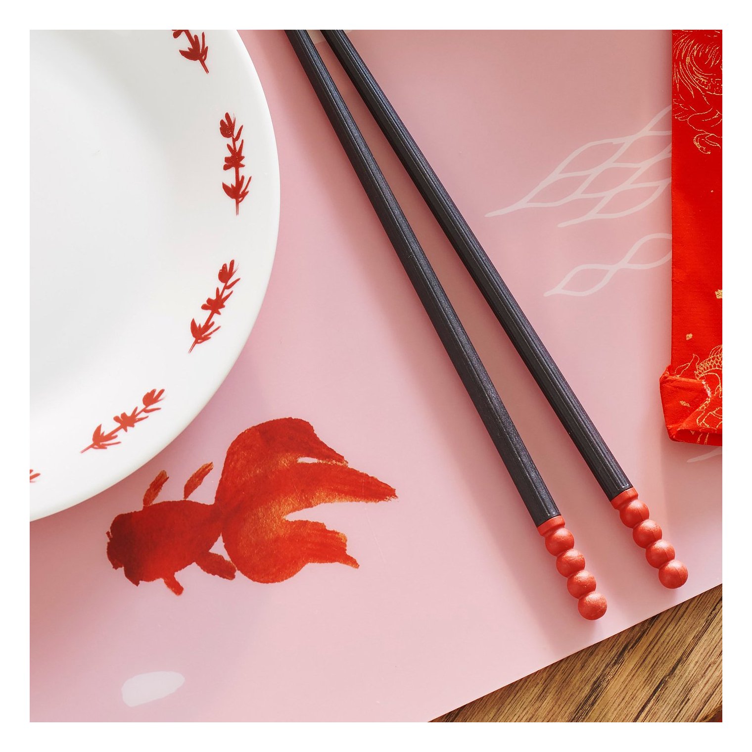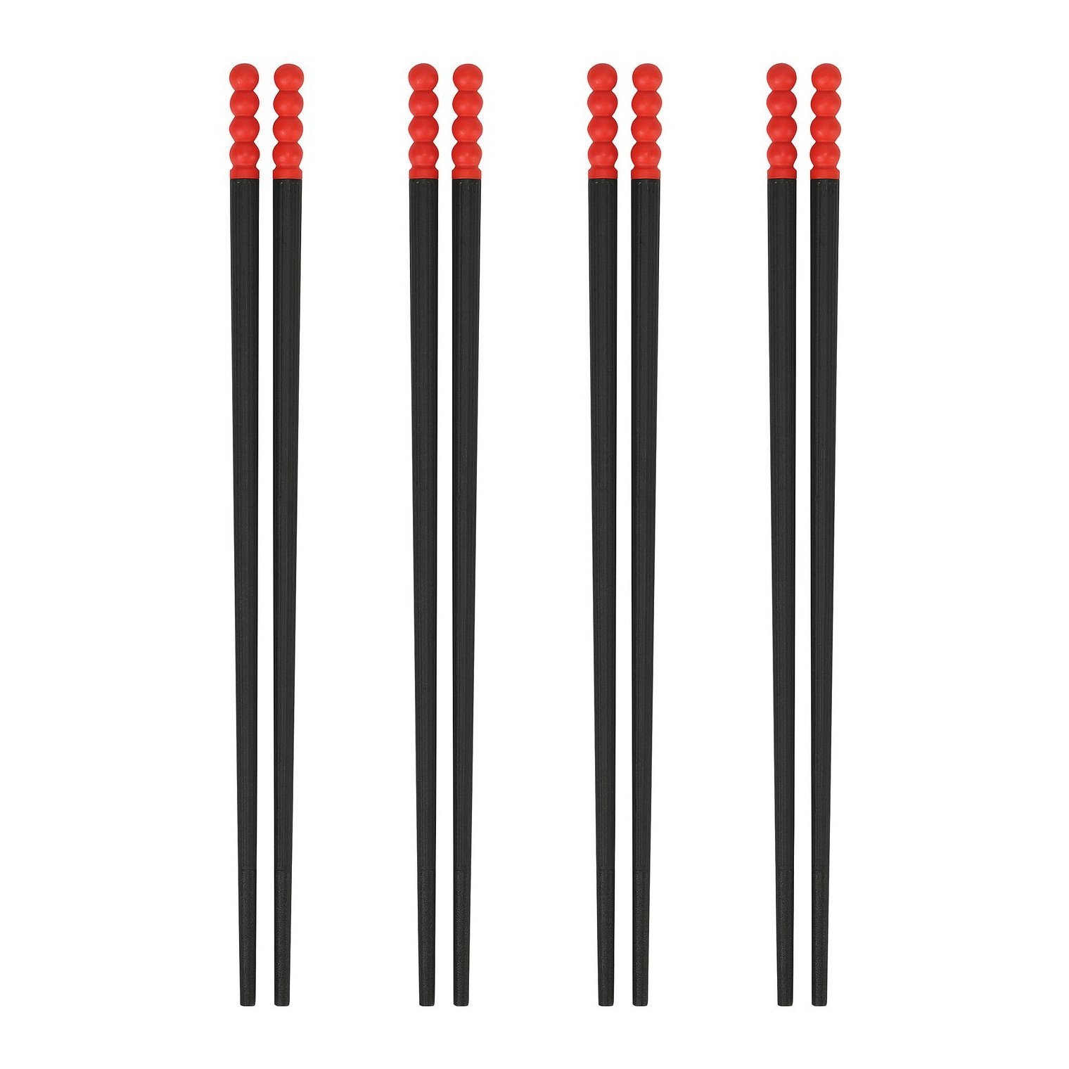 Набор из четырёх пар палочек для еды с красивым красным верхом. Идеальный аксессуар для создания праздничной атмосферы и уникальной сервировки стола — для вечеринок или повседневных обедов, год за годом.