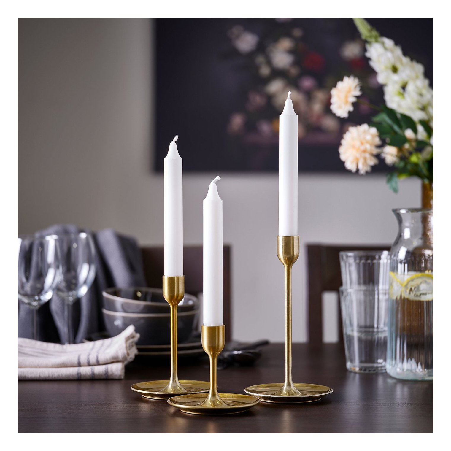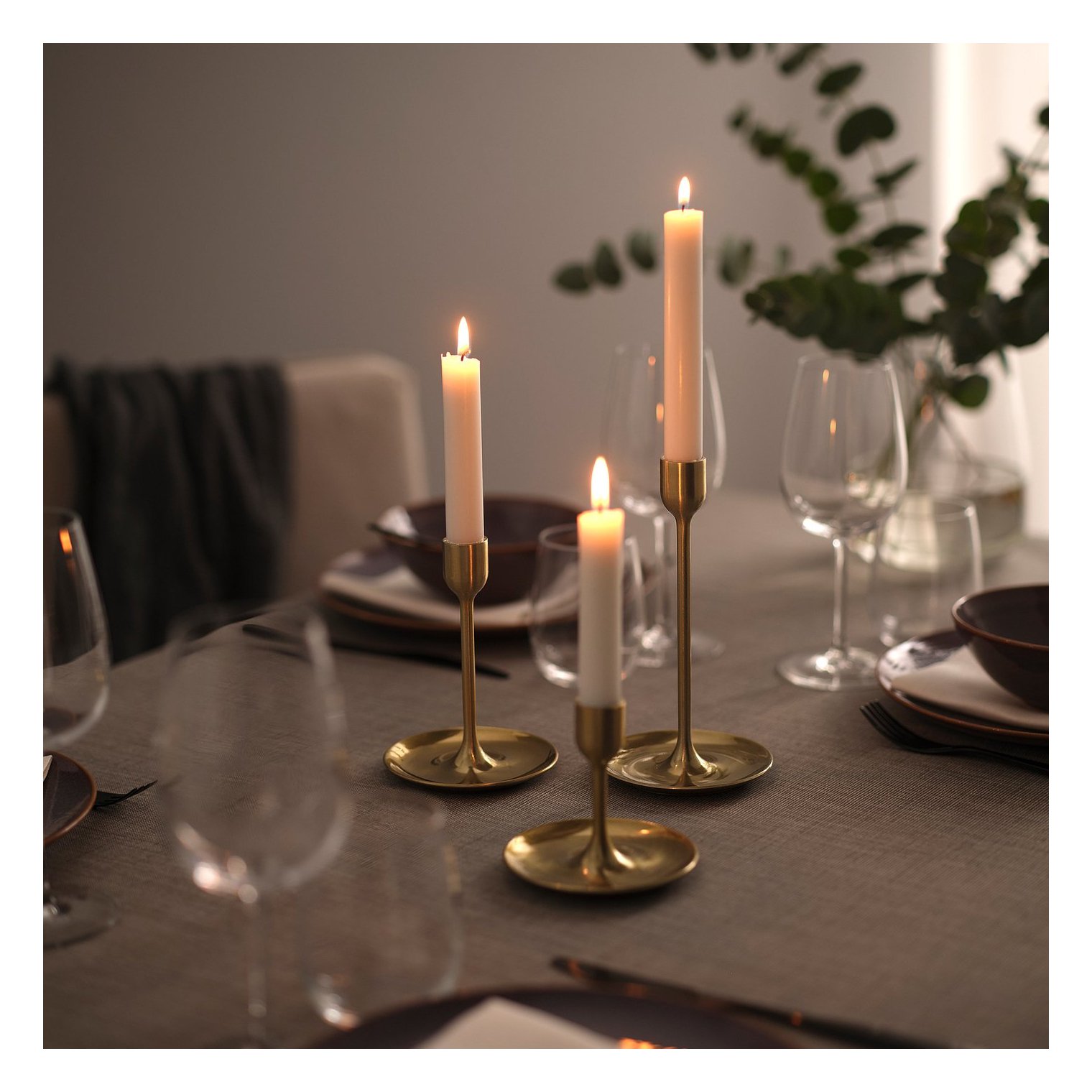 Подсвечники имеют разную высоту, что создает интересный эффект.