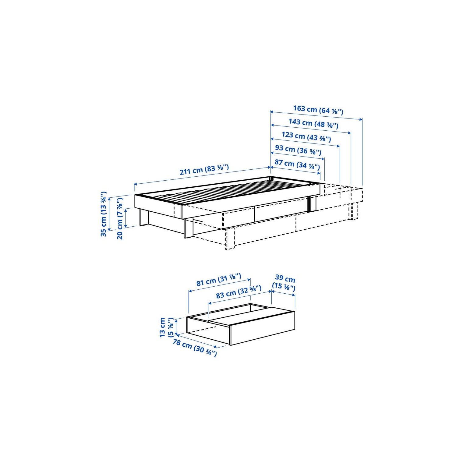 Каркас кровати выдвигается, поэтому подходит под любой матрас размером 80-160х200 см. Поэтому, если ваши потребности изменятся и вам понадобится кровать большего размера, вам не придется покупать новый каркас кровати, просто замените матрас.
