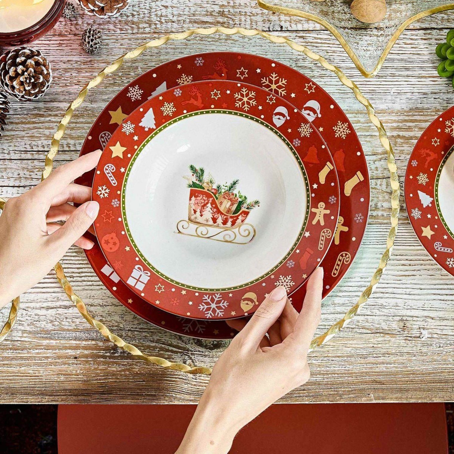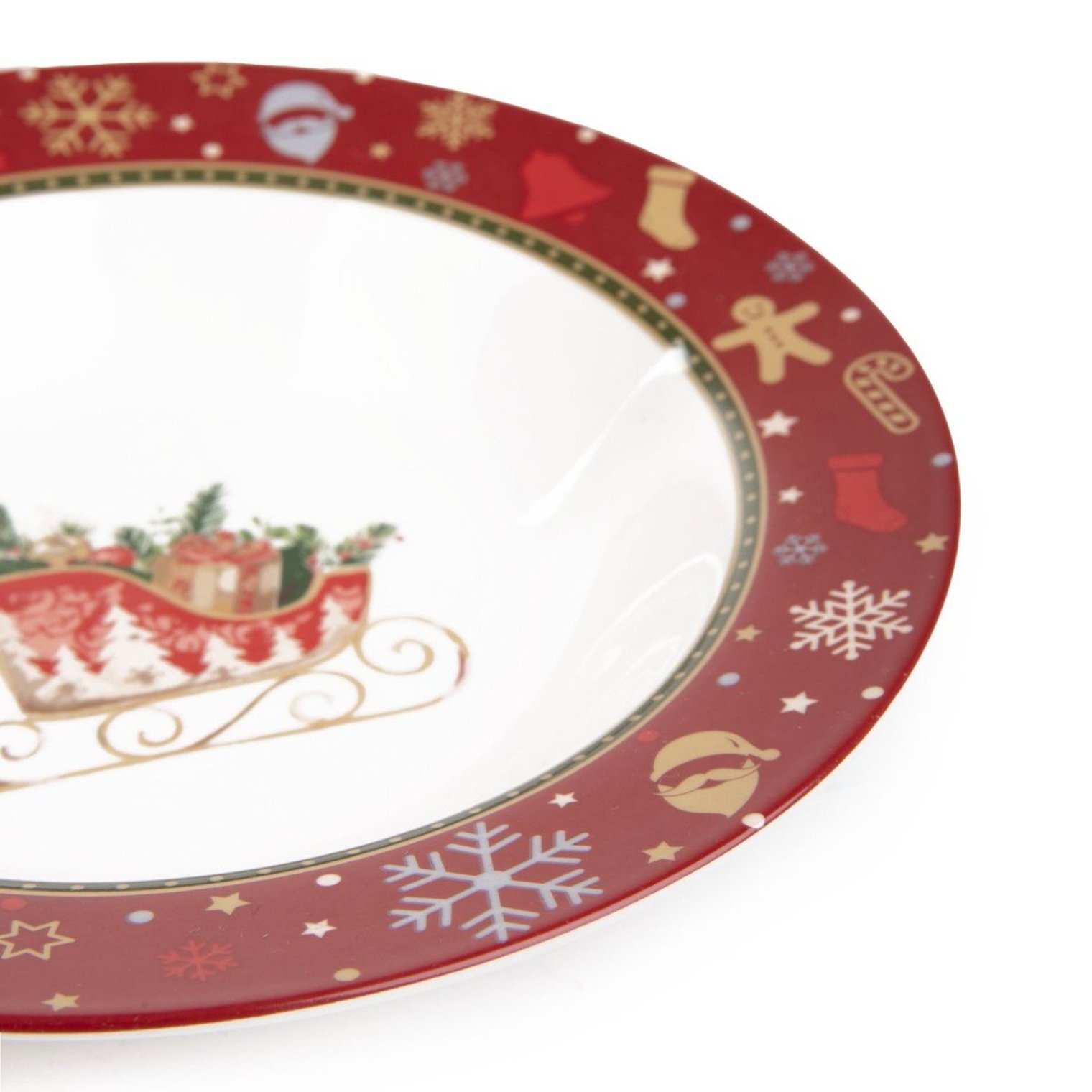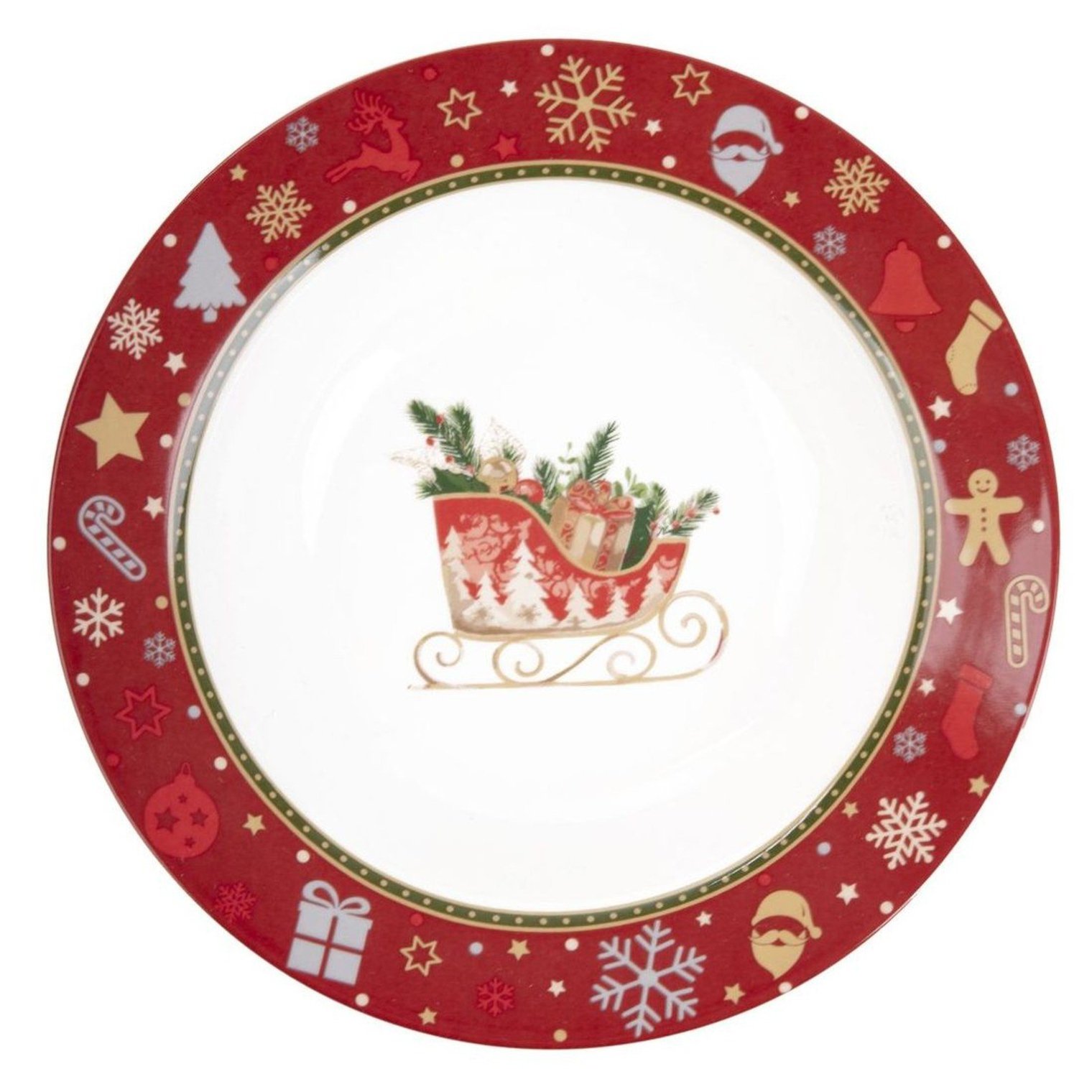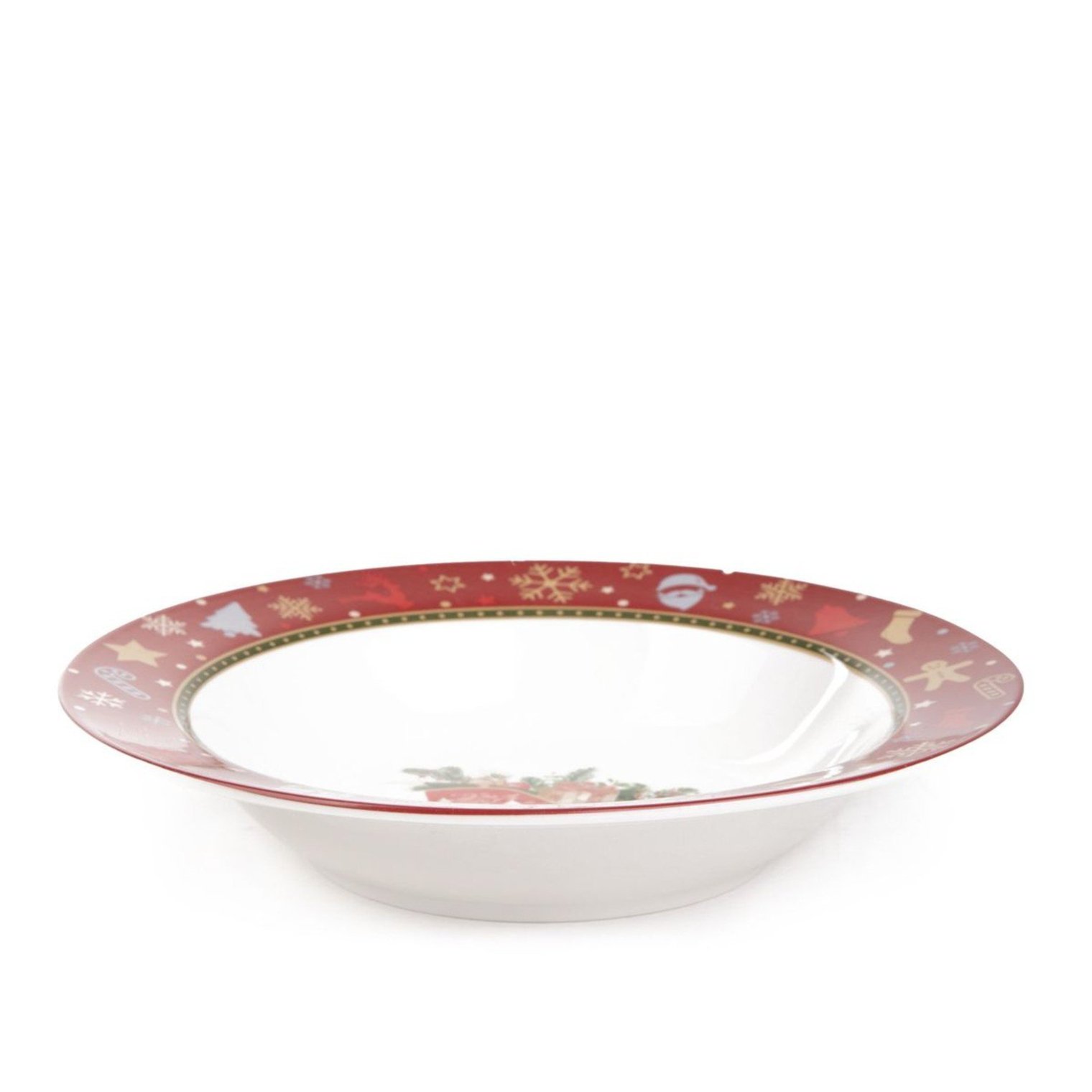 Тарелка KALVEN идеально подходит для подачи различных блюд, особенно тех, которые требуют более глубокой порции, например, супов, рагу или салатов с заправкой. Красный цвет и праздничный узор придают ей неповторимый характер.