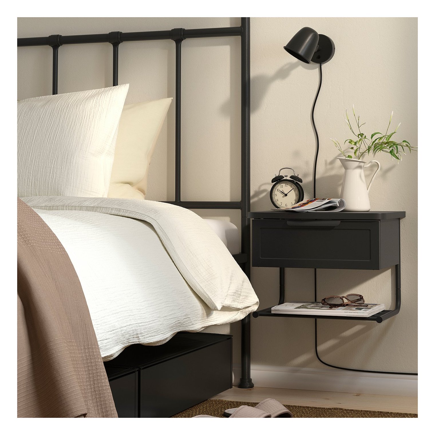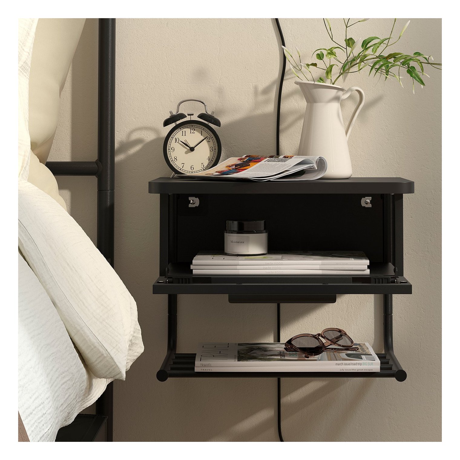 Настенное крепление позволяет разместить шкаф на нужной высоте, сохраняя при этом лёгкий доступ к ящикам для хранения под кроватью. Это также значительно облегчает уборку.