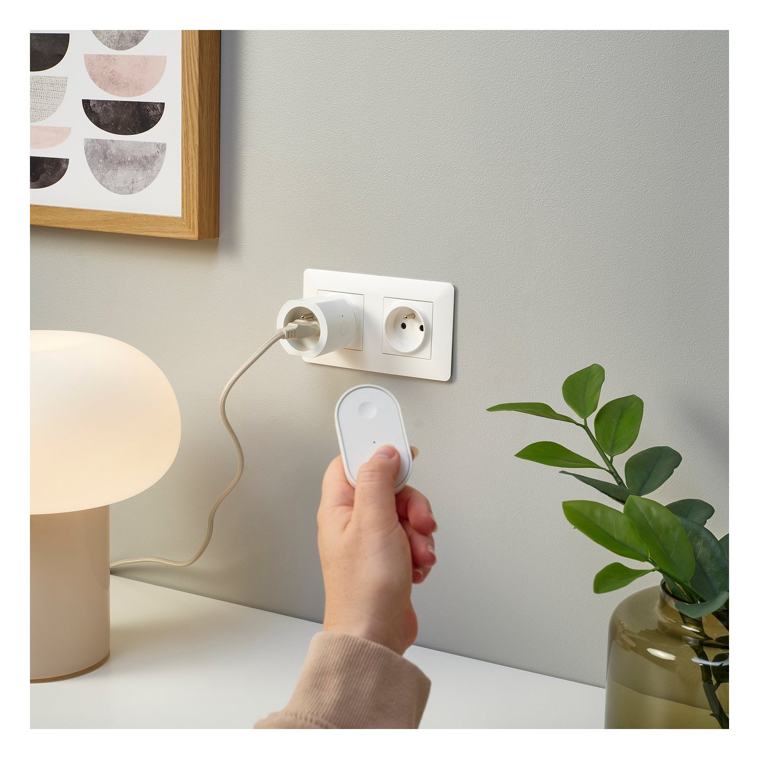Для включения и выключения розетки используйте приложение IKEA Home Smart, пульт дистанционного управления или датчик движения. К одному пульту дистанционного управления или датчику движения можно подключить до десяти розеток.
