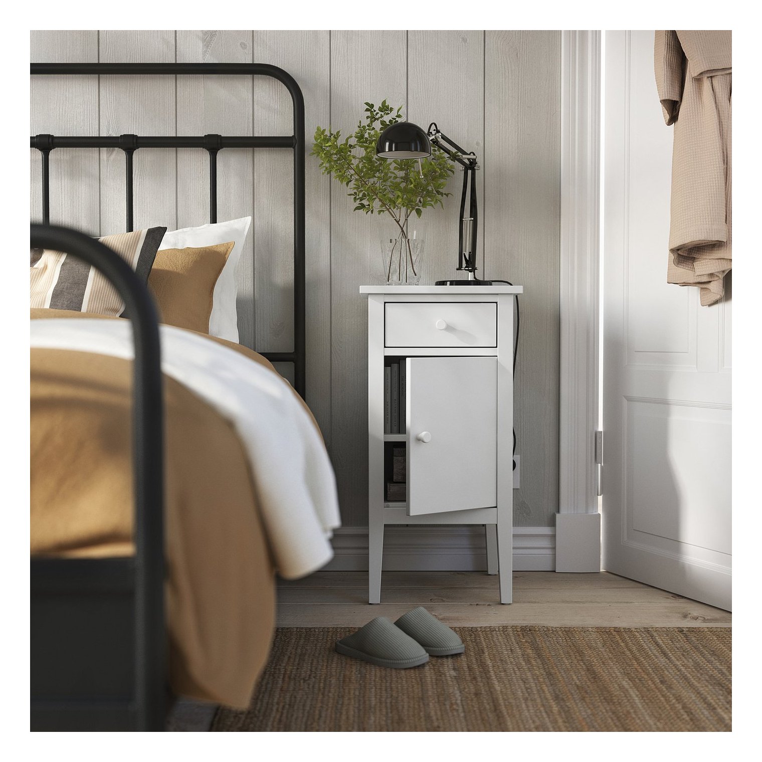 Прикроватная тумбочка с высокими, сужающимися к низу ножками создает ощущение легкости и отлично подходит для высоких кроватей. Кроме того, под ней легче убирать.