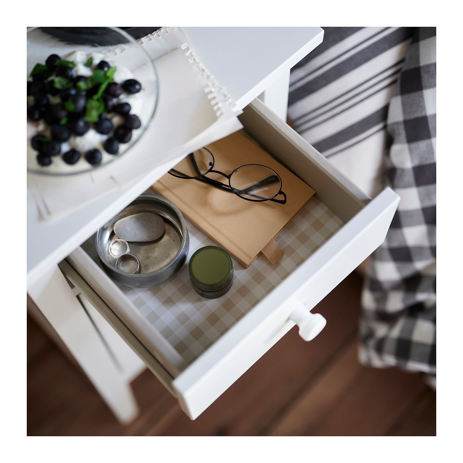 Легко избежать беспорядка из проводов, спрятав их в ящике и оставив место для ночника или зарядного устройства.