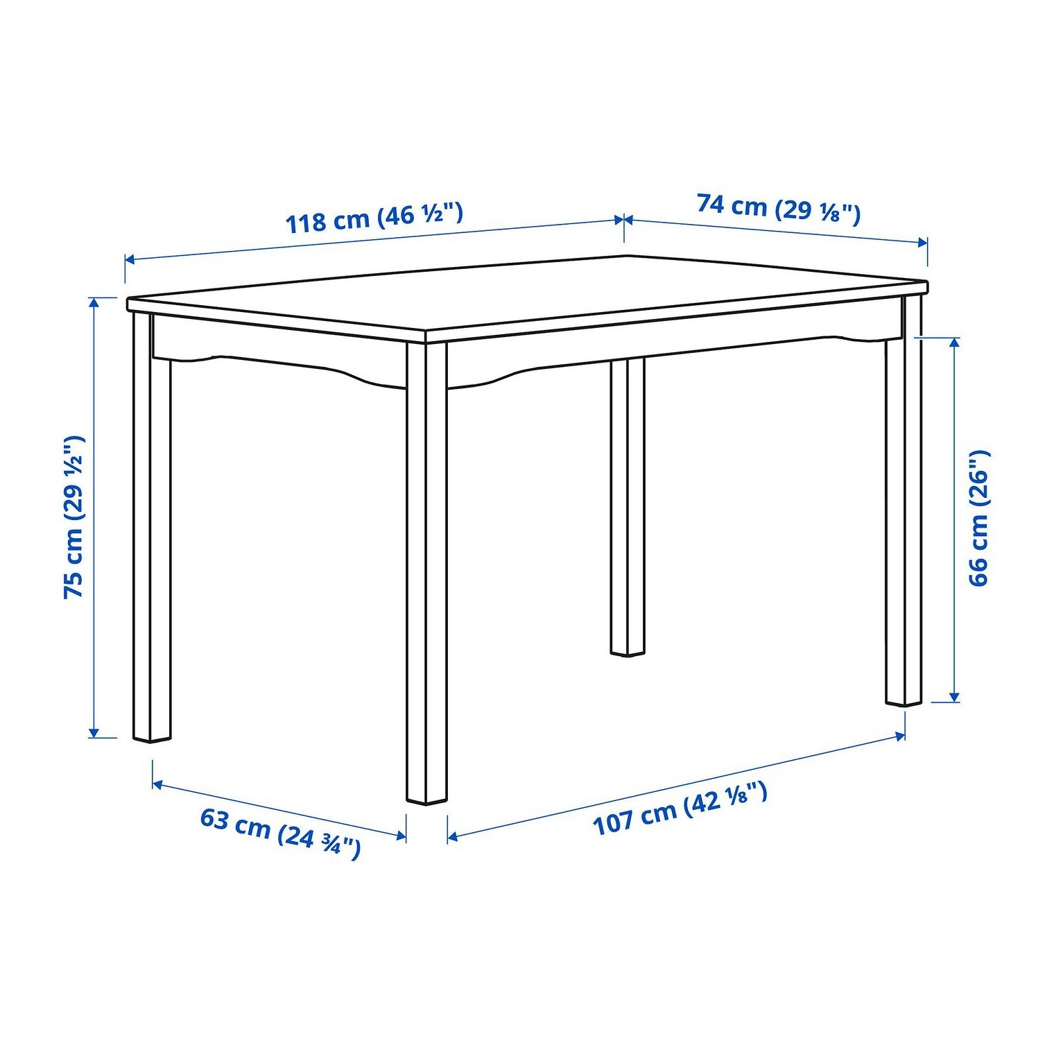 Длина стола: 118 см