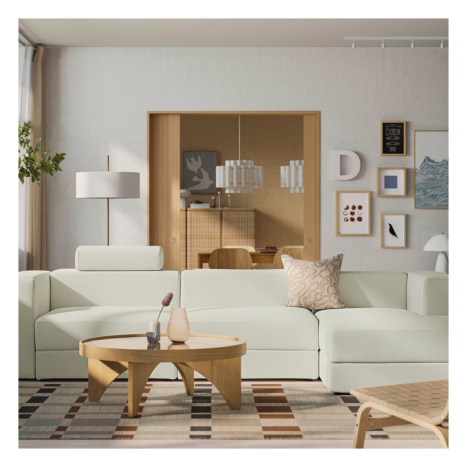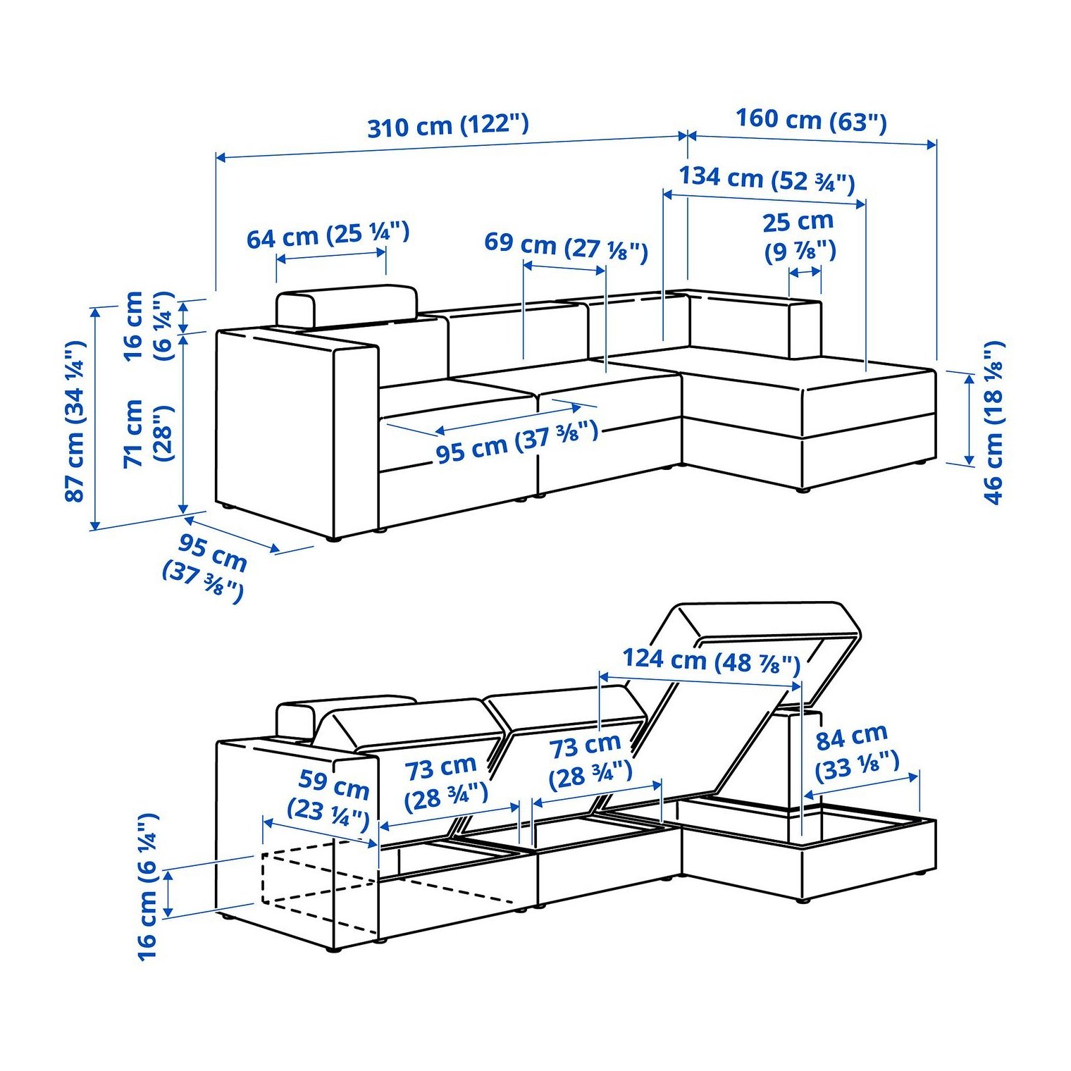 Модульный диван JÄTTEBO отличается простой формой и чистыми линиями, он мягкий, удобный и практичный, с местом для хранения под сиденьем.