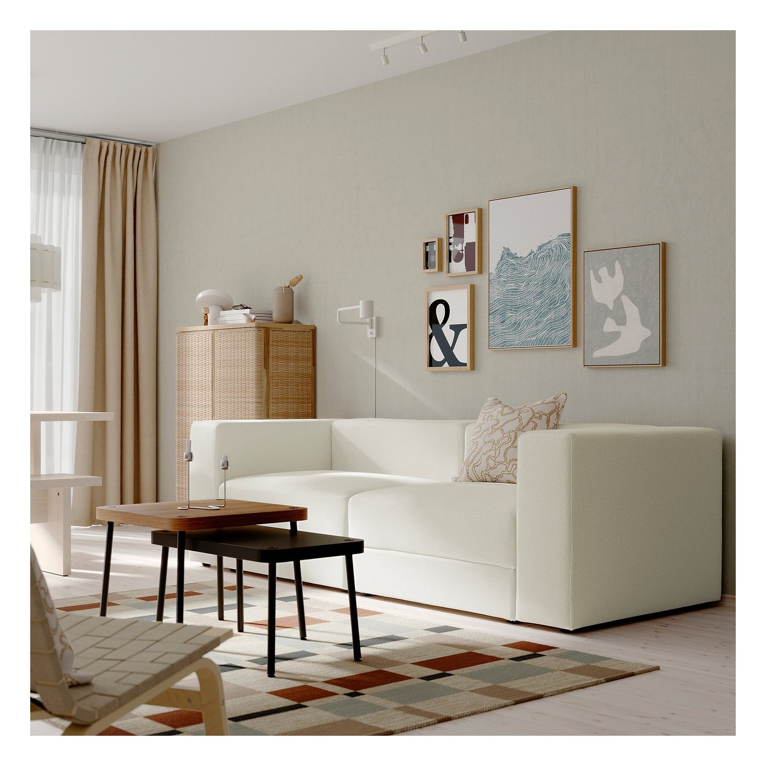 Модульный диван JÄTTEBO отличается простой формой и чистыми линиями, он мягкий, удобный и практичный, с местом для хранения под сиденьем.