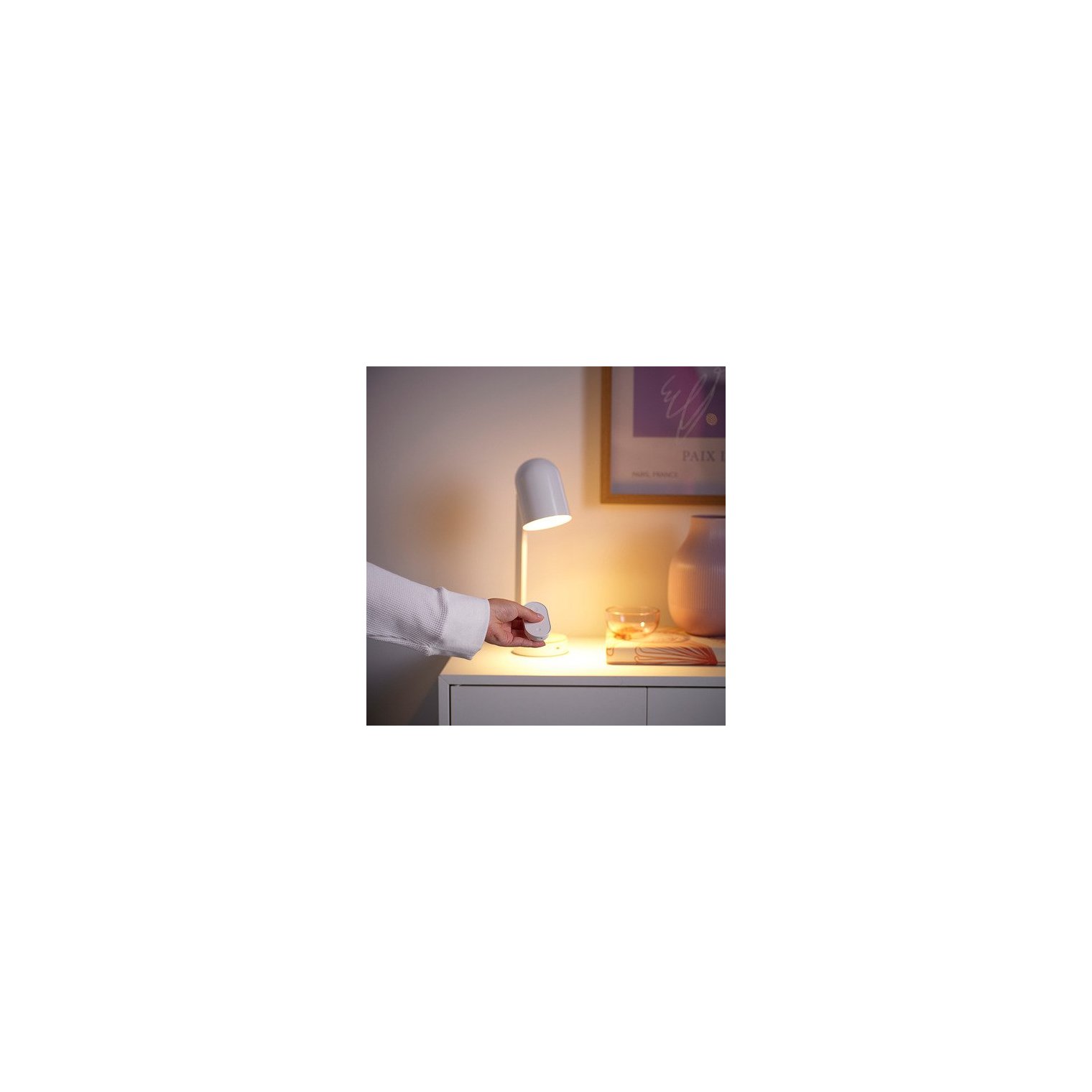Комплект уже сопряжен, поэтому просто вкрутите источник света в патрон лампы и начните использовать умное освещение.