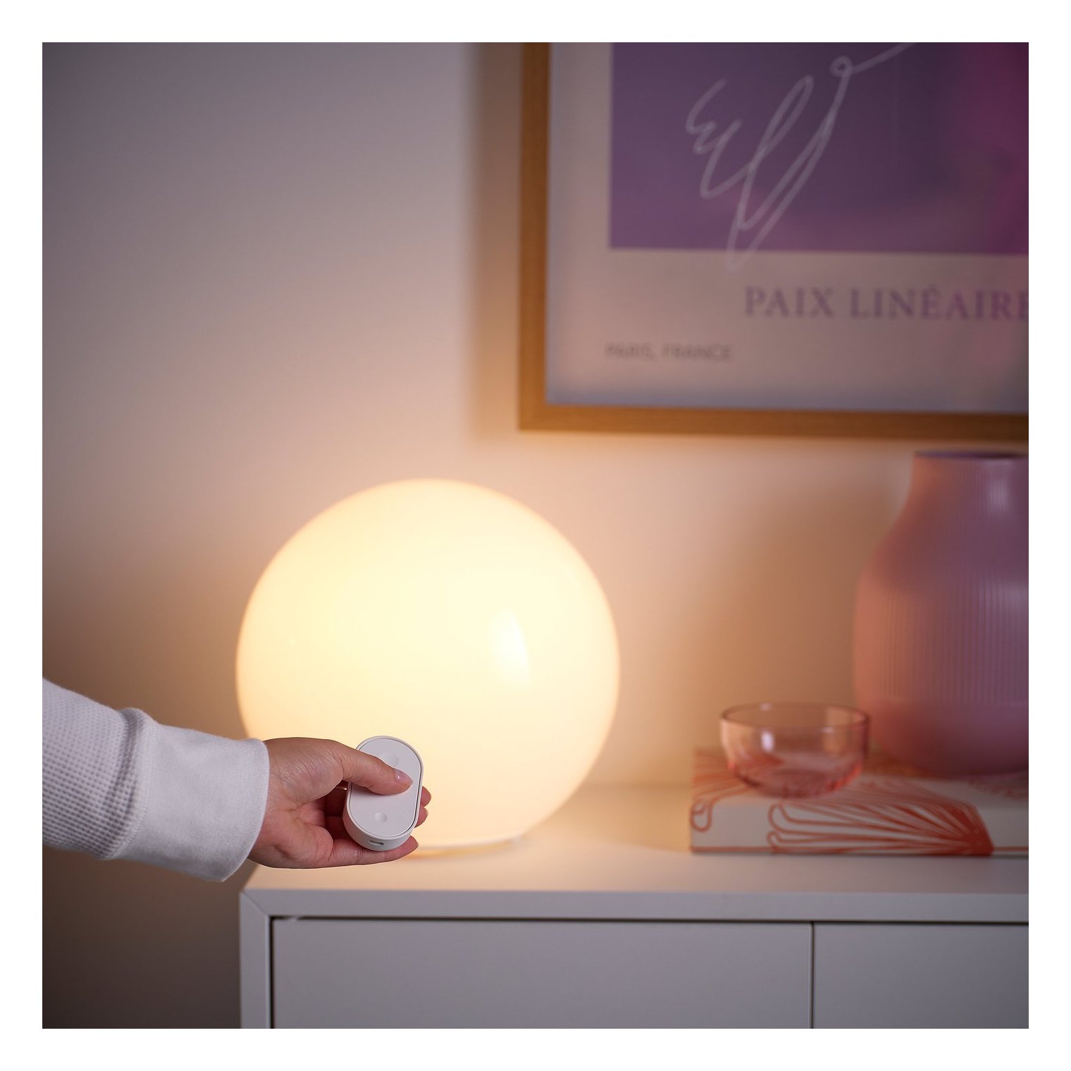Комплект уже сопряжен, поэтому просто вкрутите источник света в патрон лампы и начните использовать умное освещение.