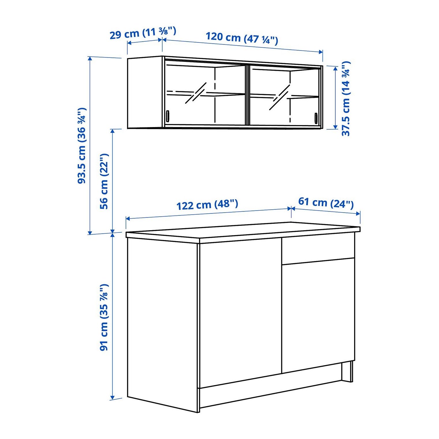 Напольный шкаф с дверцами и выдвижными ящиками/Настенный шкаф с раздвижными дверцами