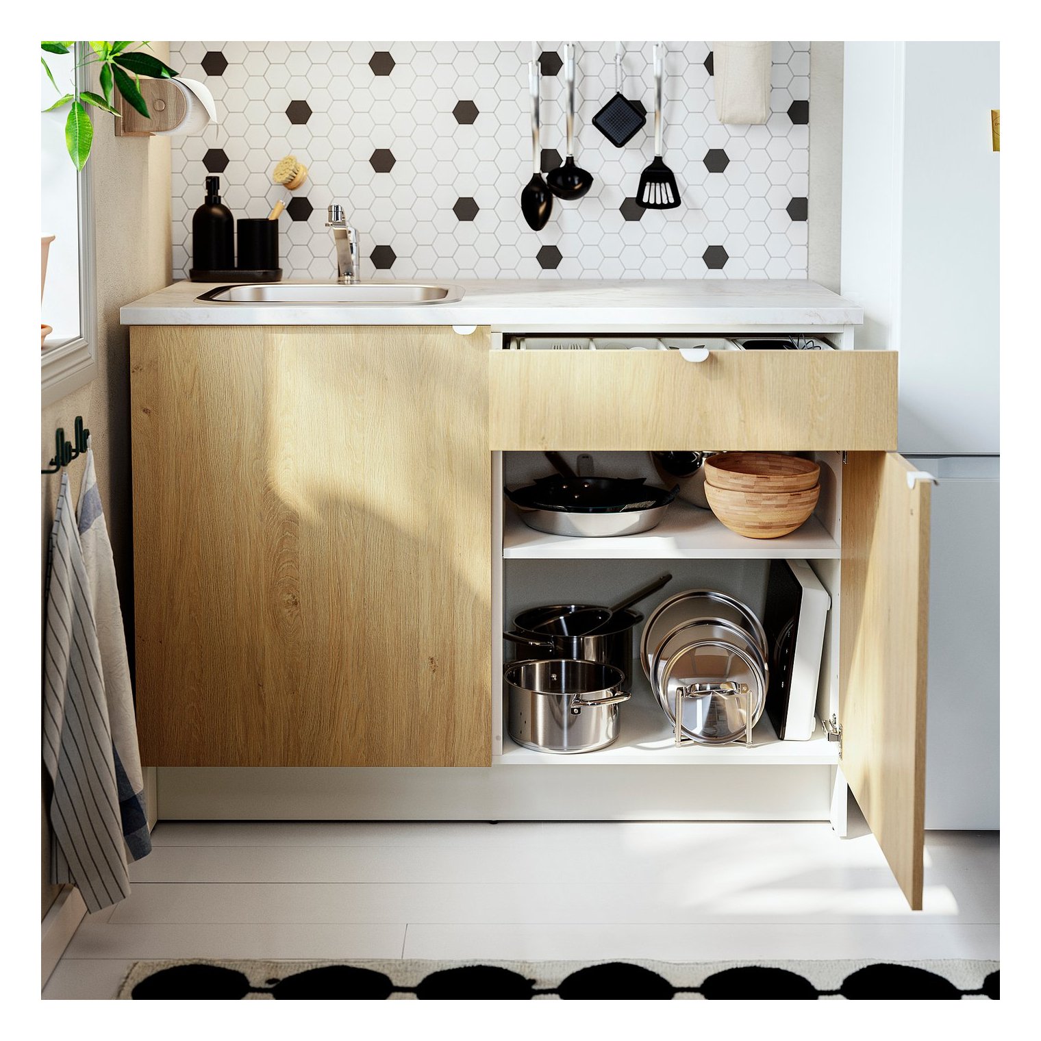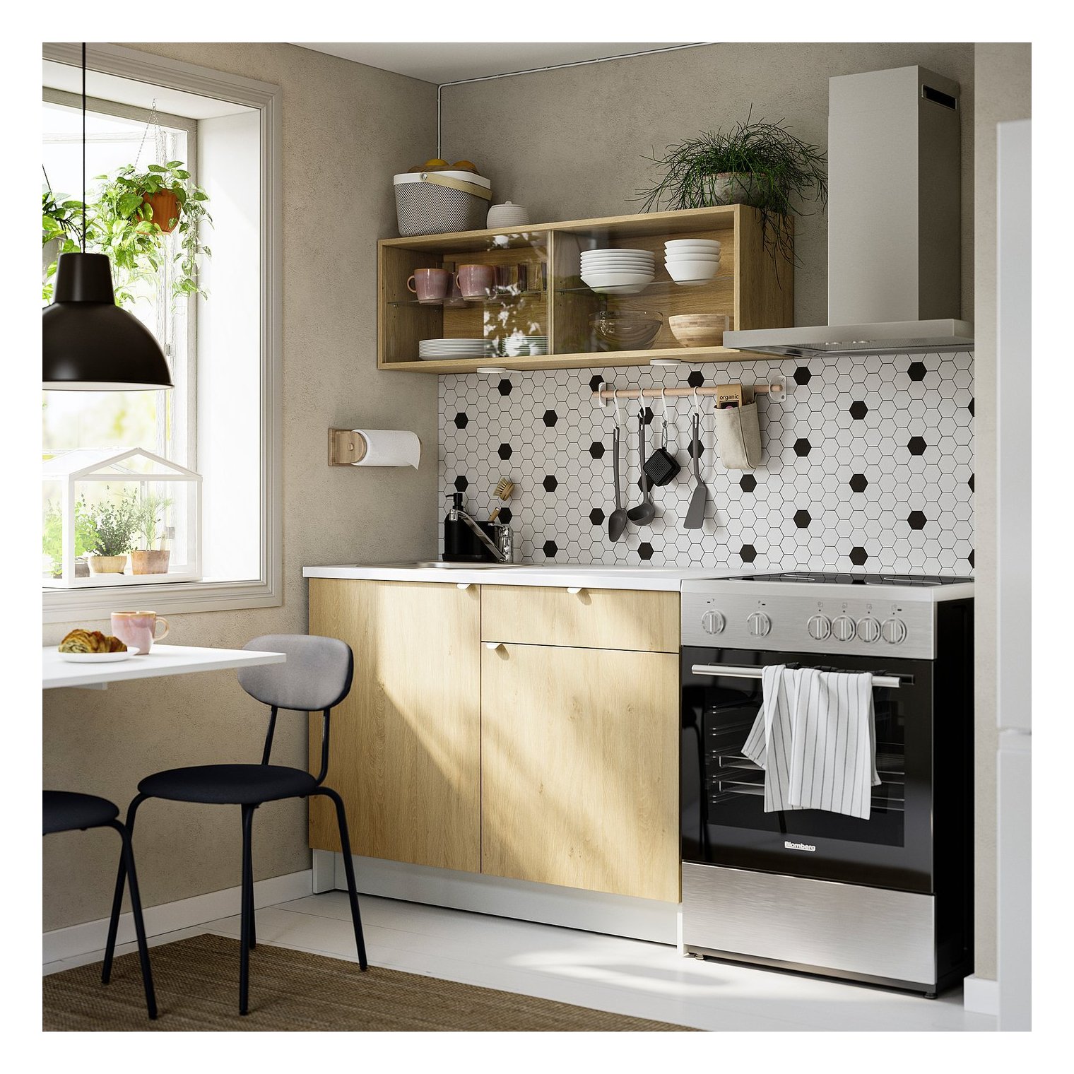 Компактное решение для небольших кухонь, где все необходимое находится под рукой.
