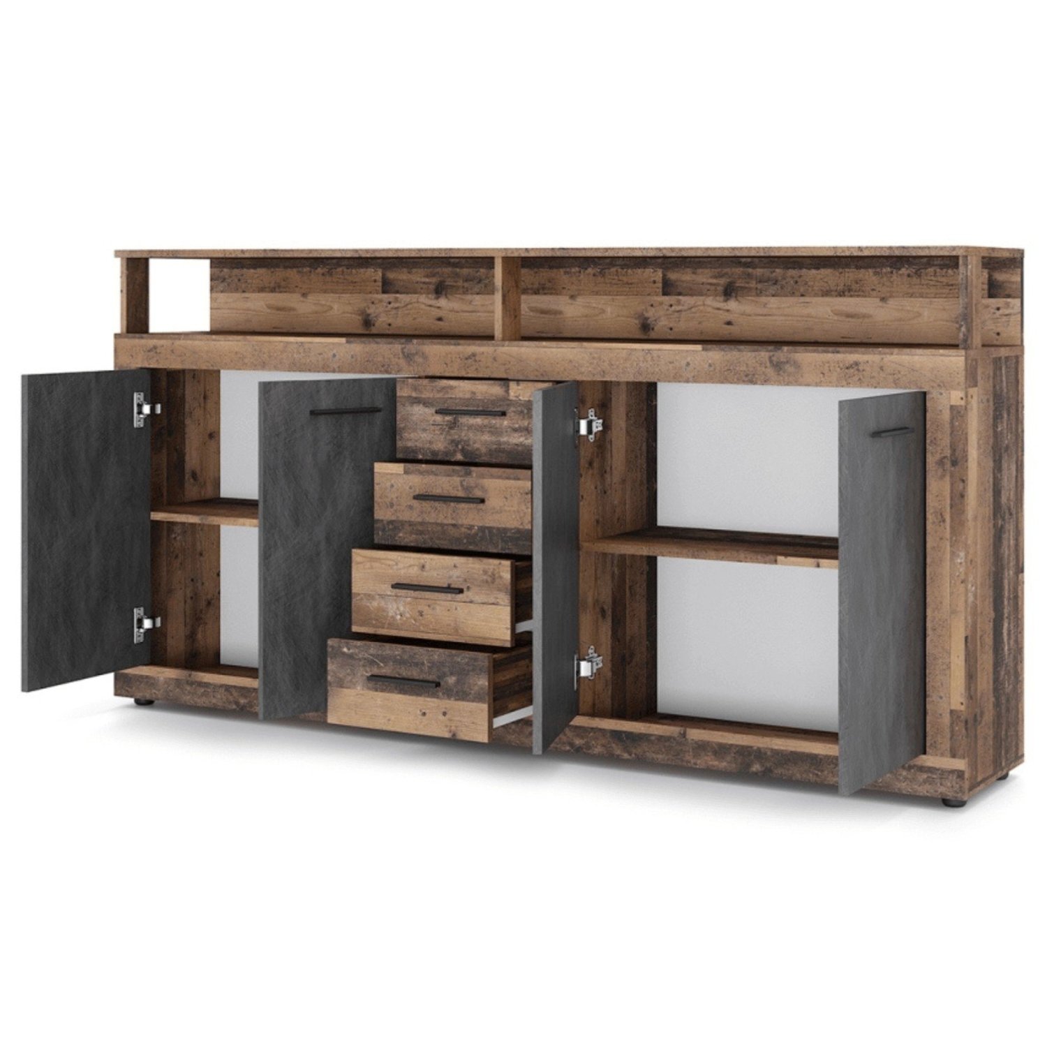 - Четыре просторных ящика и вместительные полки позволяют удобно разместить как мелкие, так и крупные предметы;