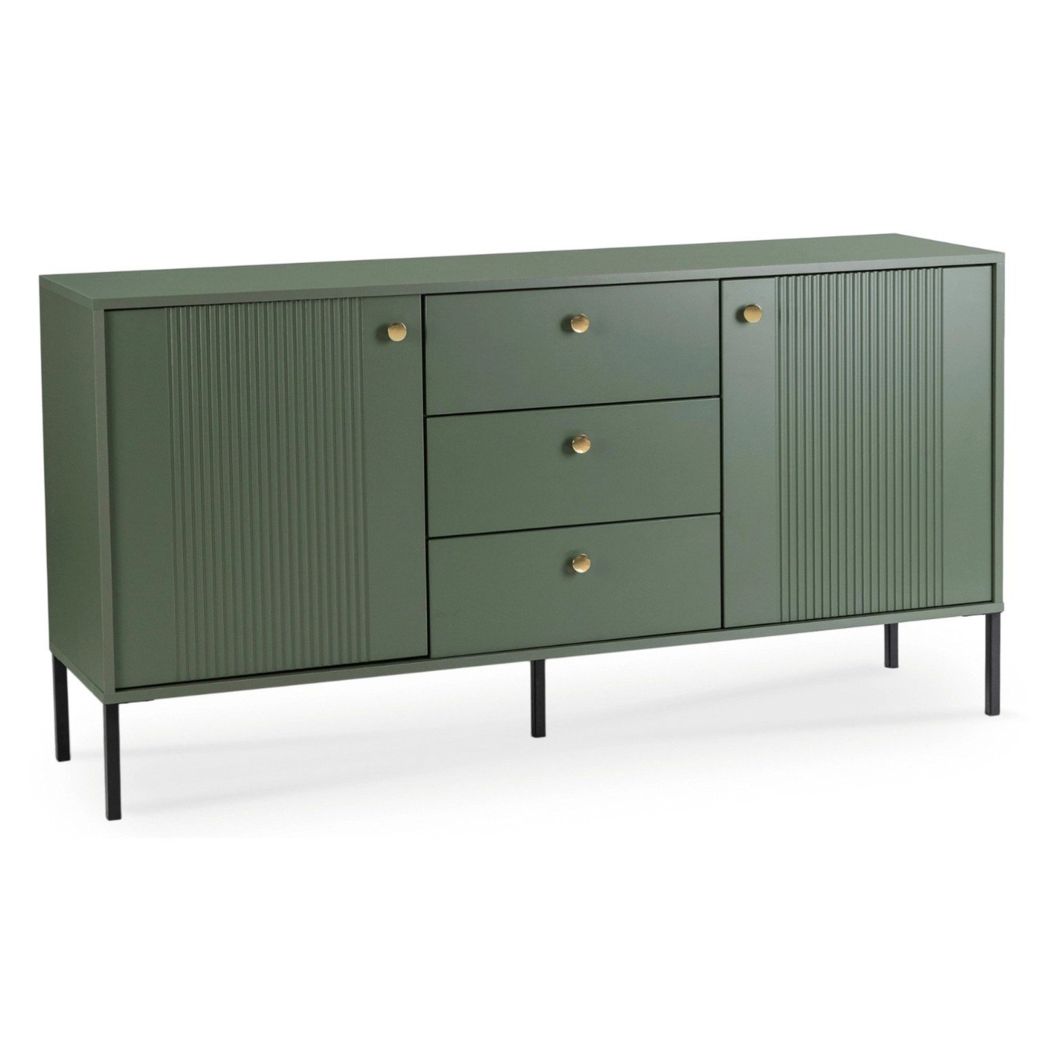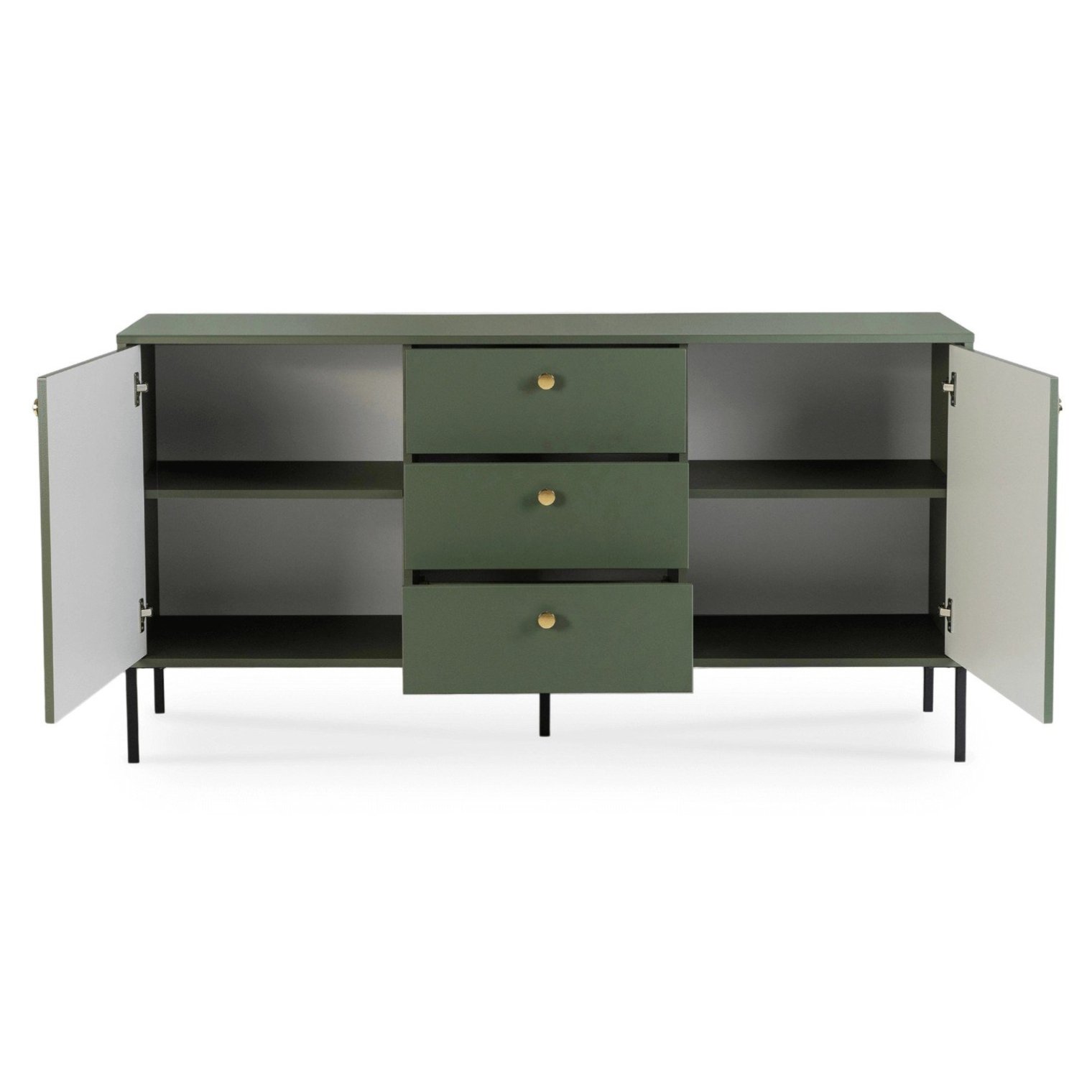 Мягкий комод — это современный комод для хранения вещей. Зелёные фасады хорошо смотрятся как в светлых, так и в тёмных интерьерах. Золотистые ручки и чёрные ножки создают элегантный контраст, придавая комоду современный, но сдержанный вид.