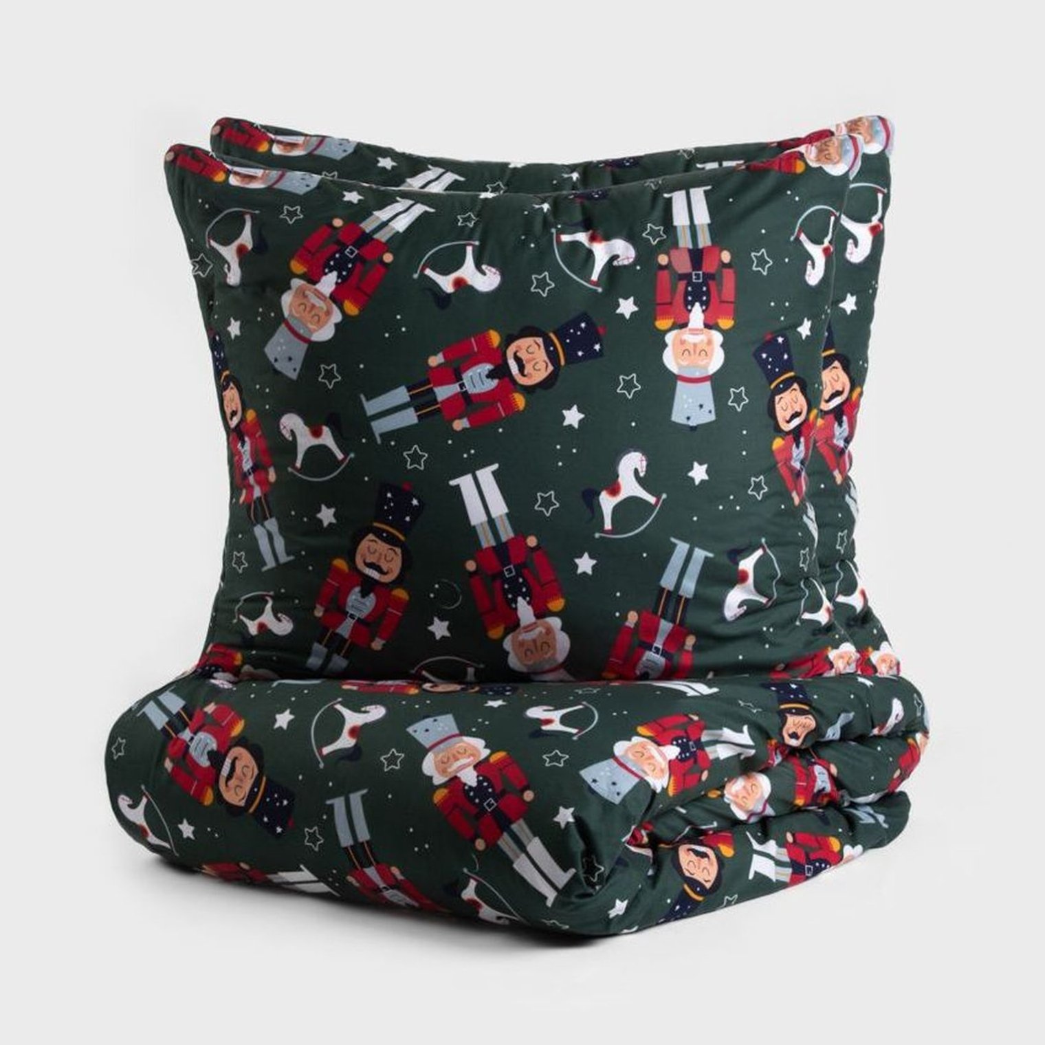 Создайте волшебную атмосферу в своей спальне. Этот комплект постельного белья из микрофибры размером 160 х 200 см с изображением щелкунчика станет идеальным дополнением к вашему праздничному интерьеру. Мягкое и уютное постельное белье обеспечит комфортный сон в холодные ночи. Зелёный цвет в сочетании с очаровательным изображением щелкунчика идеально передаёт дух праздника, создавая уютную атмосферу, способствующую расслаблению.