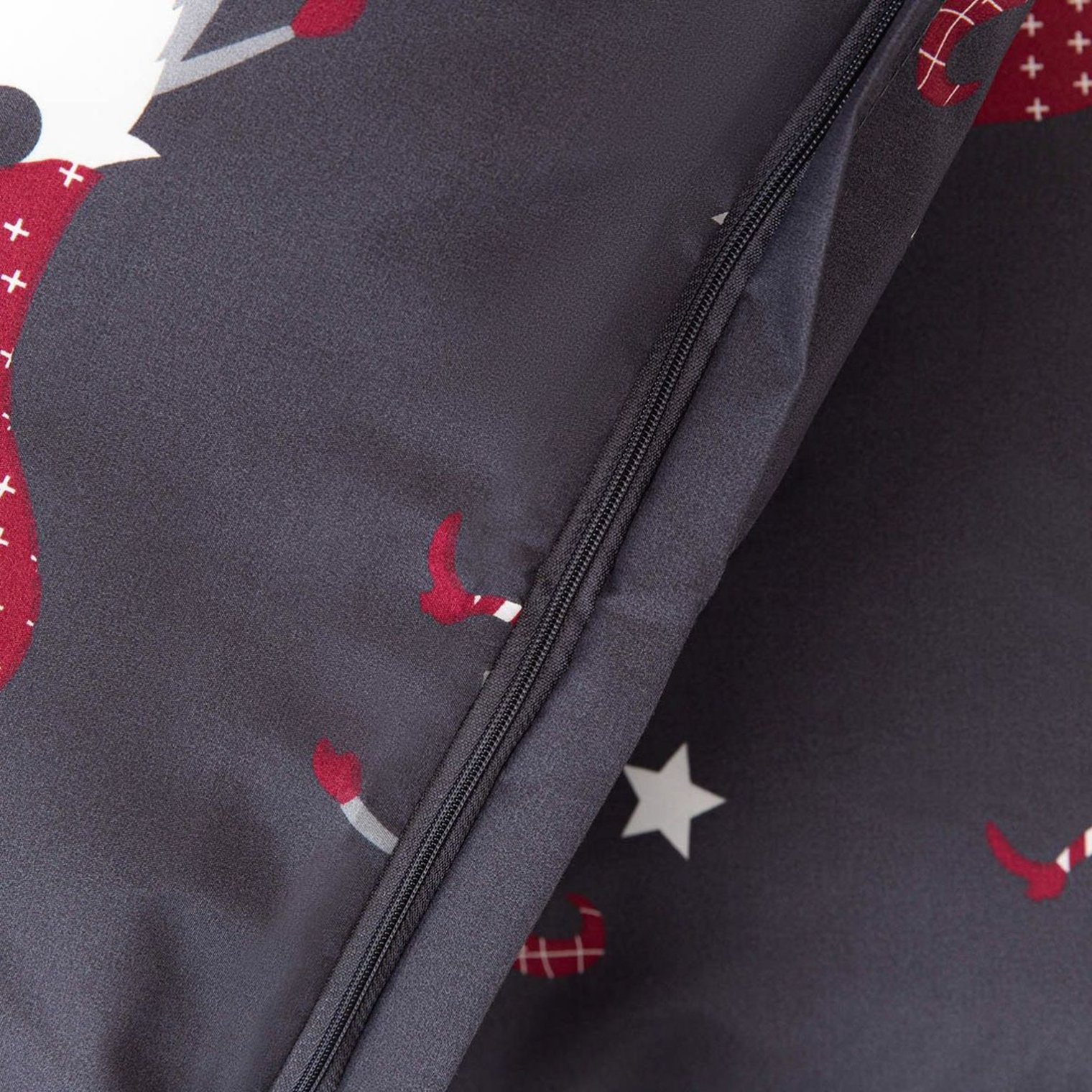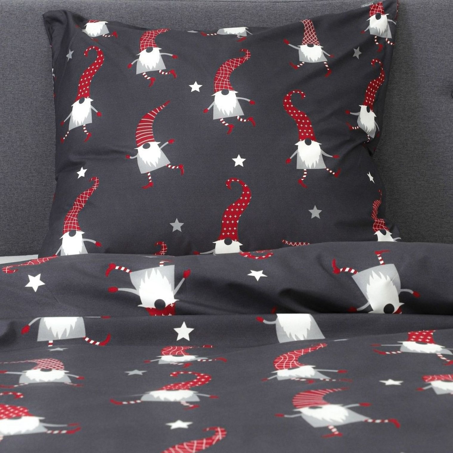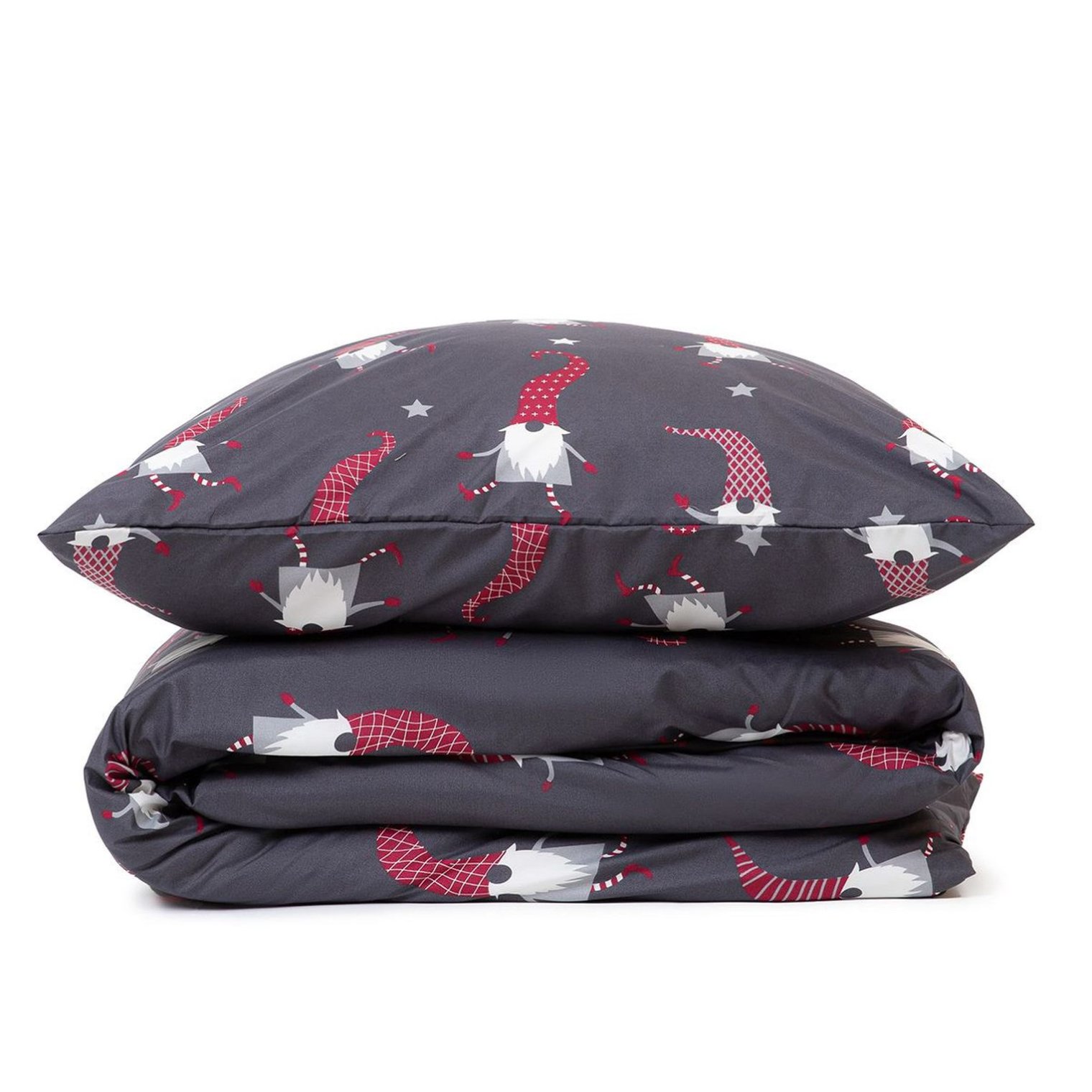 Комплект постельного белья GNOMM включает пододеяльник размером 160 x 200 см и две наволочки размером 70 x 80 см. Тёмная ткань украшена изображениями гномов, создающими праздничную атмосферу. Длинные пышные бороды и огромные шляпы этих созданий добавляют им особого очарования.