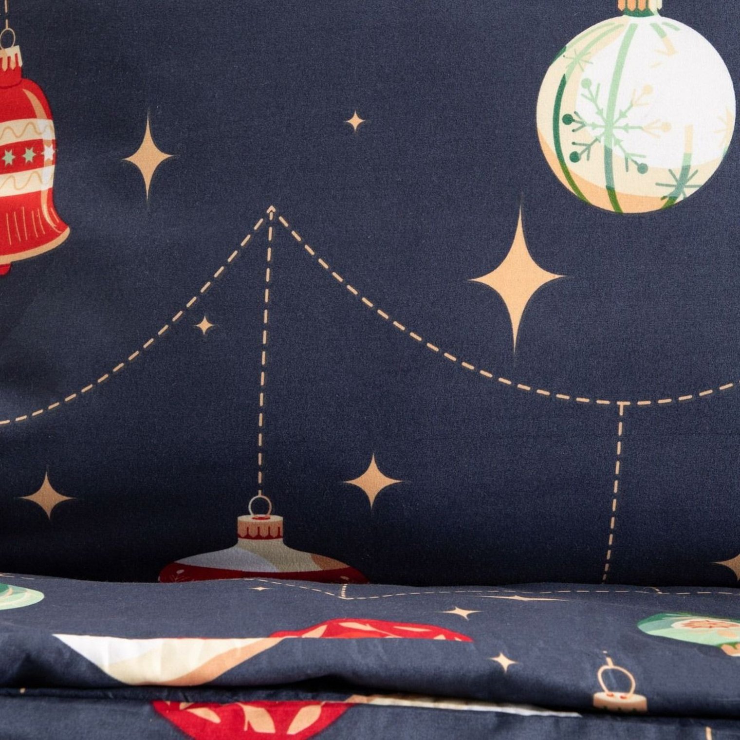 Украсьте свою спальню так же, как рождественскую ёлку! Это постельное бельё из микрофибры насыщенного тёмно-синего цвета прекрасно подчёркивает яркий узор в виде ёлочных шаров . Создайте неповторимую рождественскую атмосферу в доме и обеспечьте себе комфортный сон и отдых.