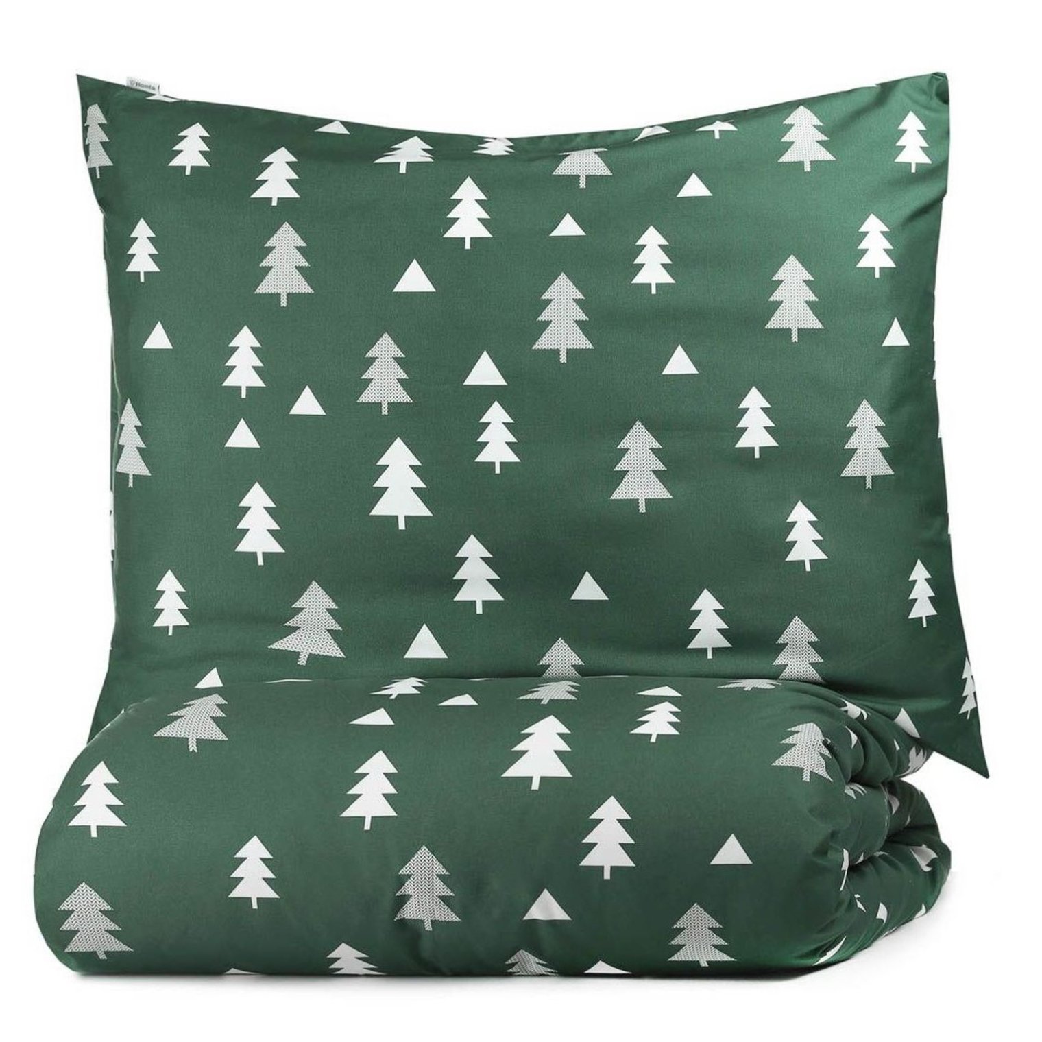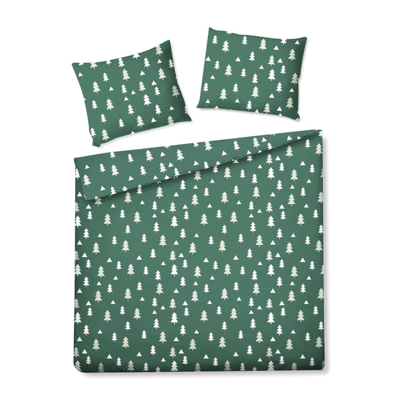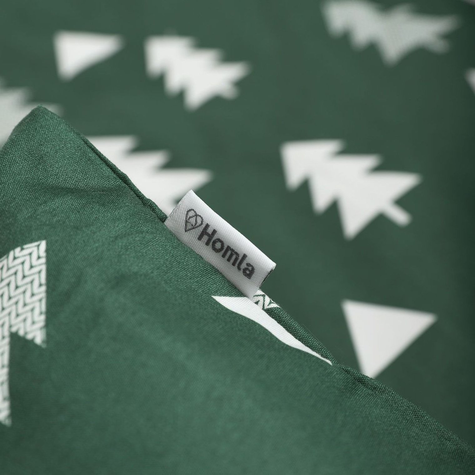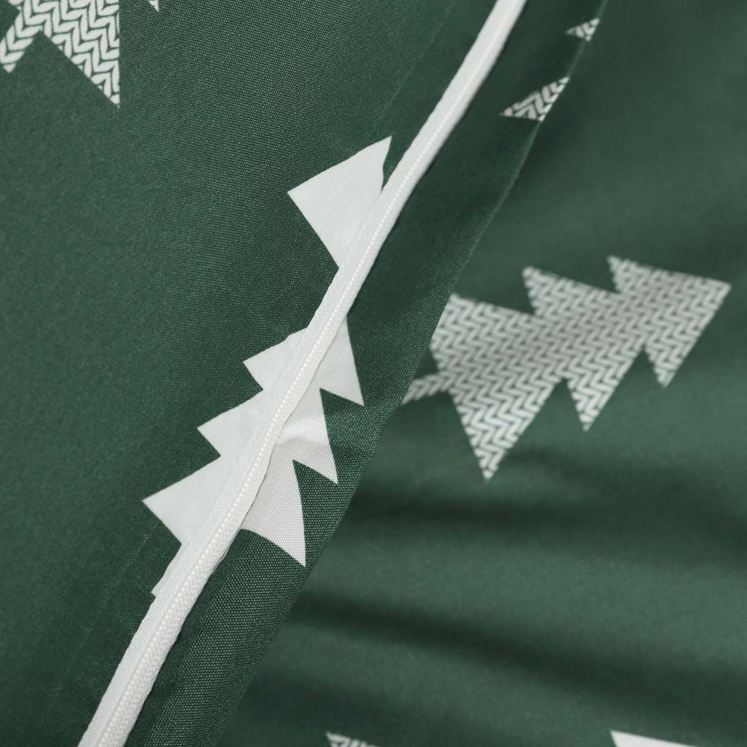 Комплект постельного белья PEMA включает пододеяльник размером 160 x 200 см и две наволочки размером 70 x 80 см. Этот комплект добавит праздничного настроения любой спальне благодаря рисунку в виде маленьких белых ёлочек на ярком зелёном фоне. Он прекрасно сочетается с классическим белым и приглушёнными цветами, а также с ярким красным, особенно в праздничные дни.