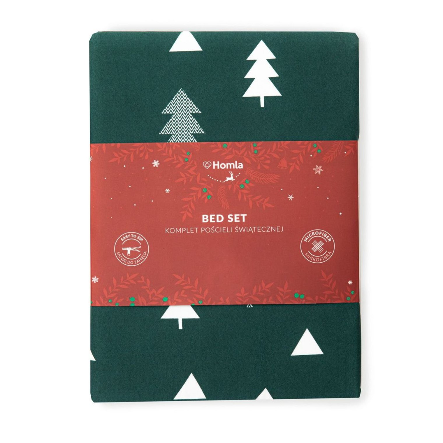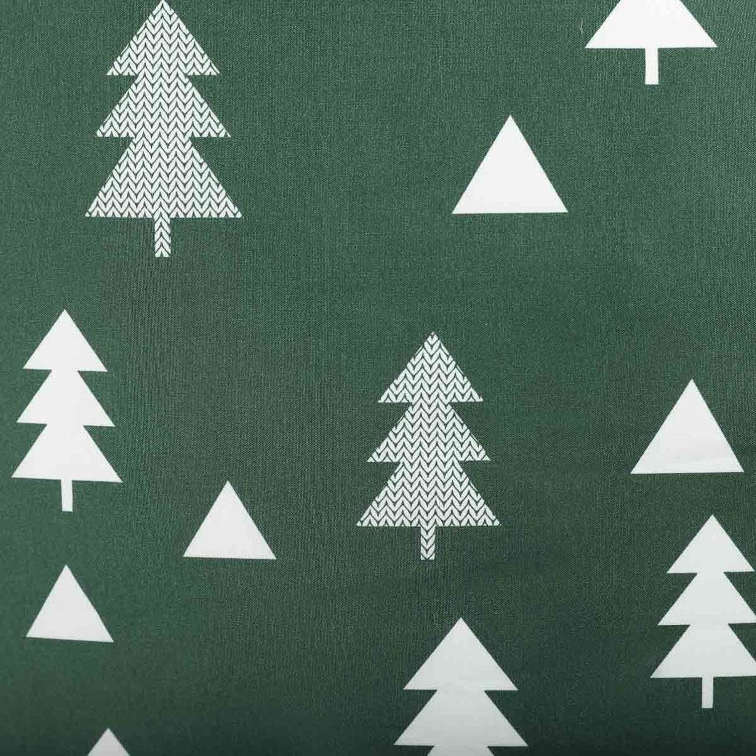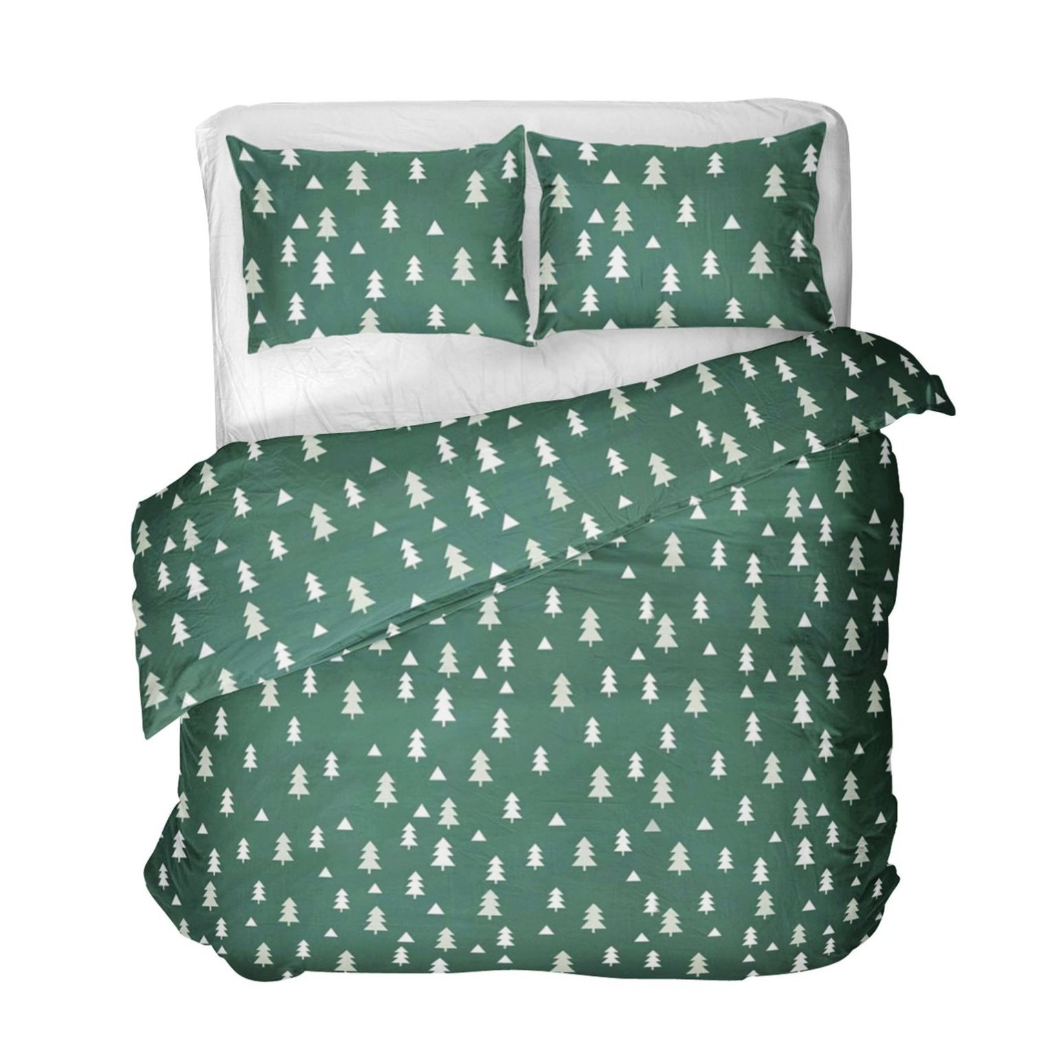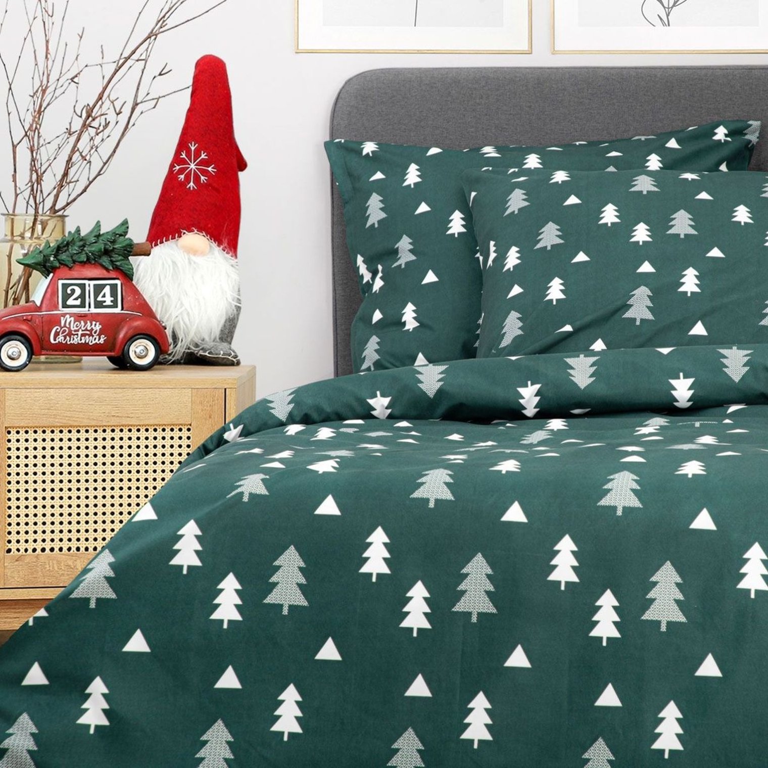 Комплект постельного белья PEMA включает пододеяльник размером 160 x 200 см и две наволочки размером 70 x 80 см. Этот комплект добавит праздничного настроения любой спальне благодаря рисунку в виде маленьких белых ёлочек на ярком зелёном фоне. Он прекрасно сочетается с классическим белым и приглушёнными цветами, а также с ярким красным, особенно в праздничные дни.