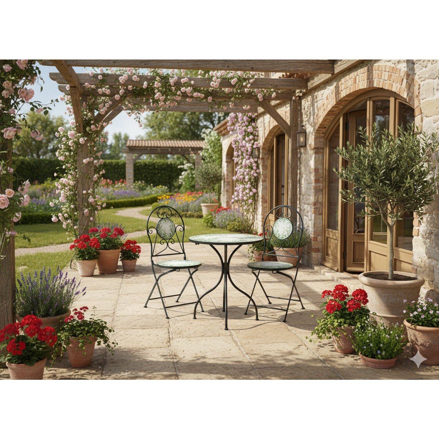 Придайте своему саду, террасе или балкону неповторимую атмосферу элегантности и стиля. Набор FYLLA впечатляет своей декоративной мозаикой и прочной металлической конструкцией, сочетающей эстетику и долговечность. Этот набор идеально подходит для повседневного отдыха на свежем воздухе – утренний кофе, тишина после обеда или вечерние беседы