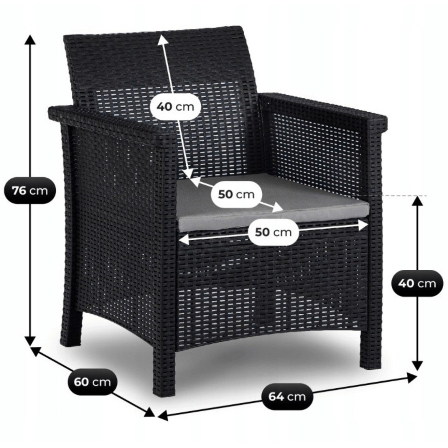 Ищете уютное место для отдыха на террасе, в саду или на балконе? Садовый комплект Brenta — это решение, которое позволит вам создать комфортное пространство для отдыха на открытом воздухе. Его современный дизайн в классическом черном цвете дополнит различные интерьеры, а удобные сиденья сделают каждый момент, проведенный на свежем воздухе, еще более расслабляющим. Это отличный выбор для утреннего кофе, встреч с близкими или отдыха после долгого дня.