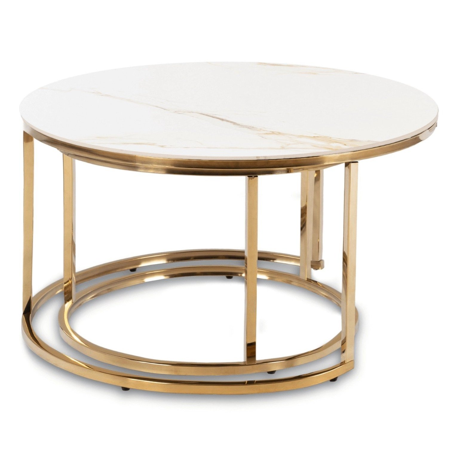 Ищете элегантный акцент для гостиной? Этот комплект из двух журнальных столиков Milano — роскошное решение, восхищающее своим внешним видом и практичностью. Вы можете поставить оба столика вместе, по отдельности или задвинуть один под другой — именно так, как вам нужно.