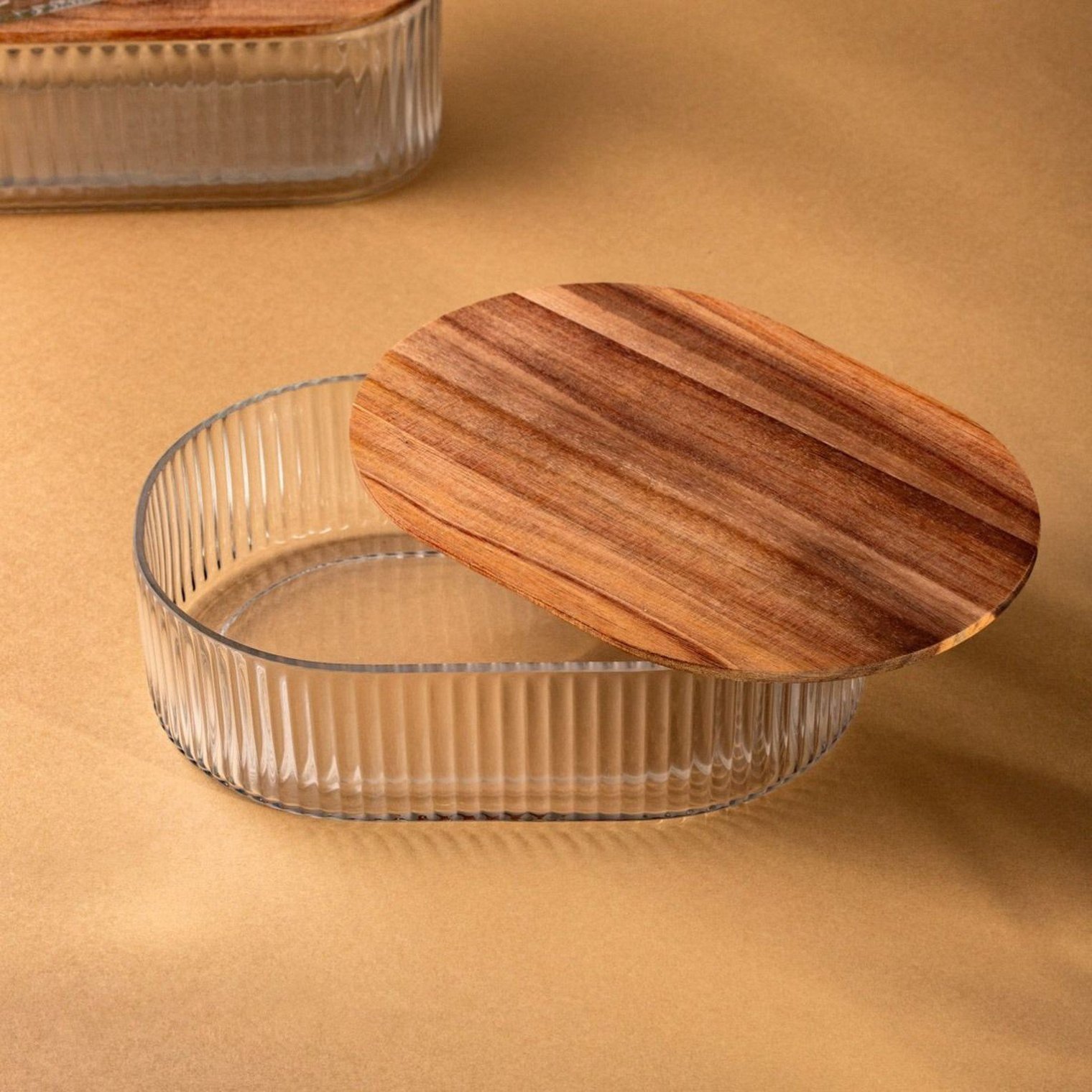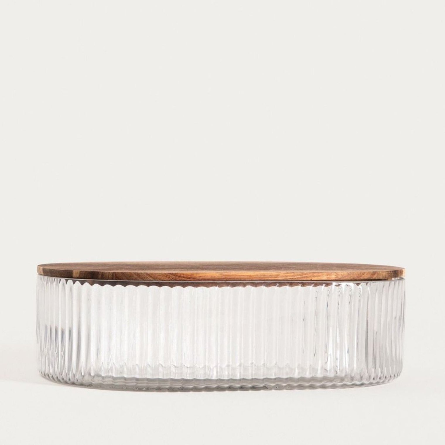 Если вы хотите элегантно хранить большие порции закусок, сладостей или других продуктов, контейнер BARDO — идеальный выбор. Прозрачное стекло позволяет легко видеть содержимое, а крышка из акации добавляет естественного очарования и стильного вида. Этот контейнер идеально подходит как для повседневного использования, так и для особых случаев.