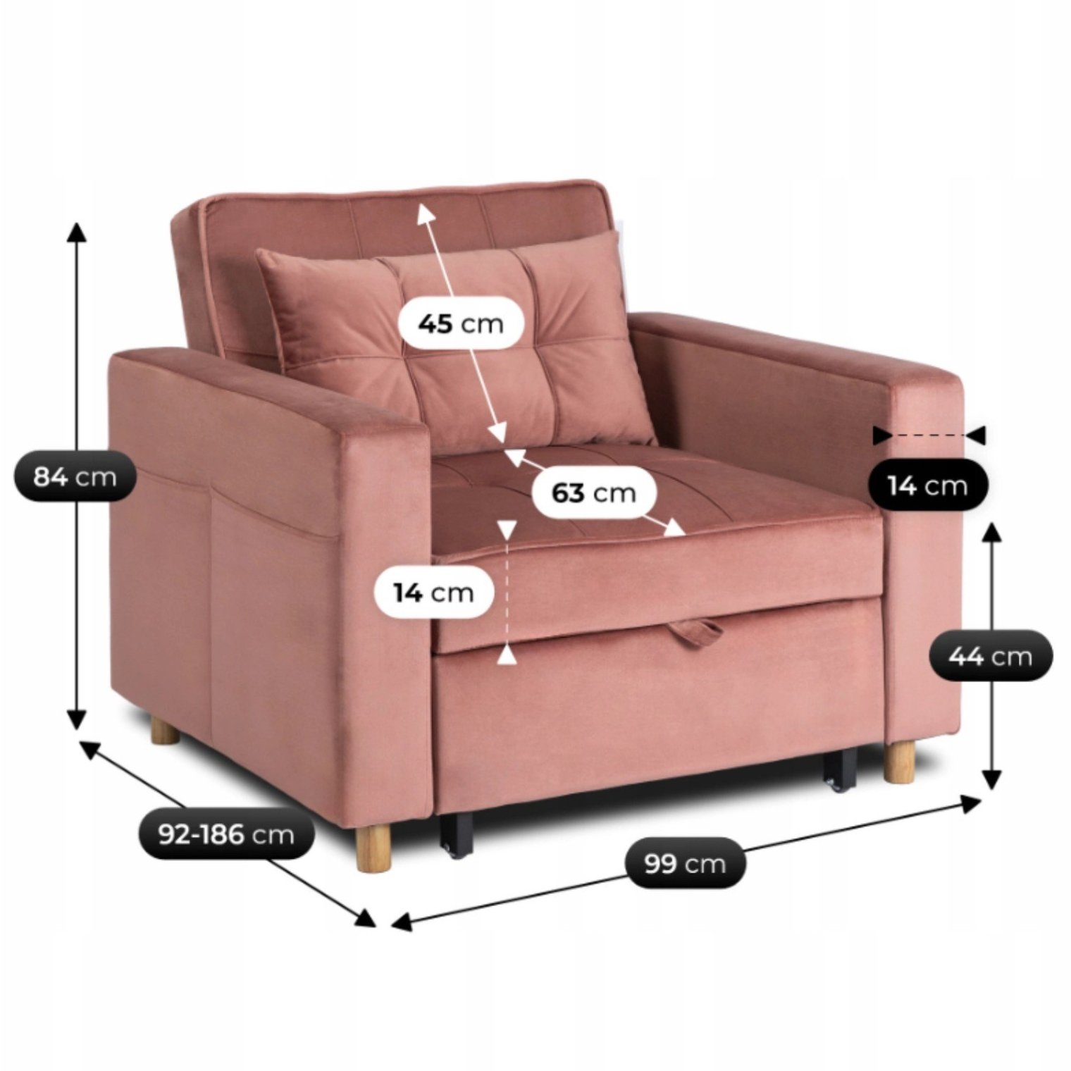 Кресло мягкое раскладное Mebel Elit SOLOR Welur Розовый