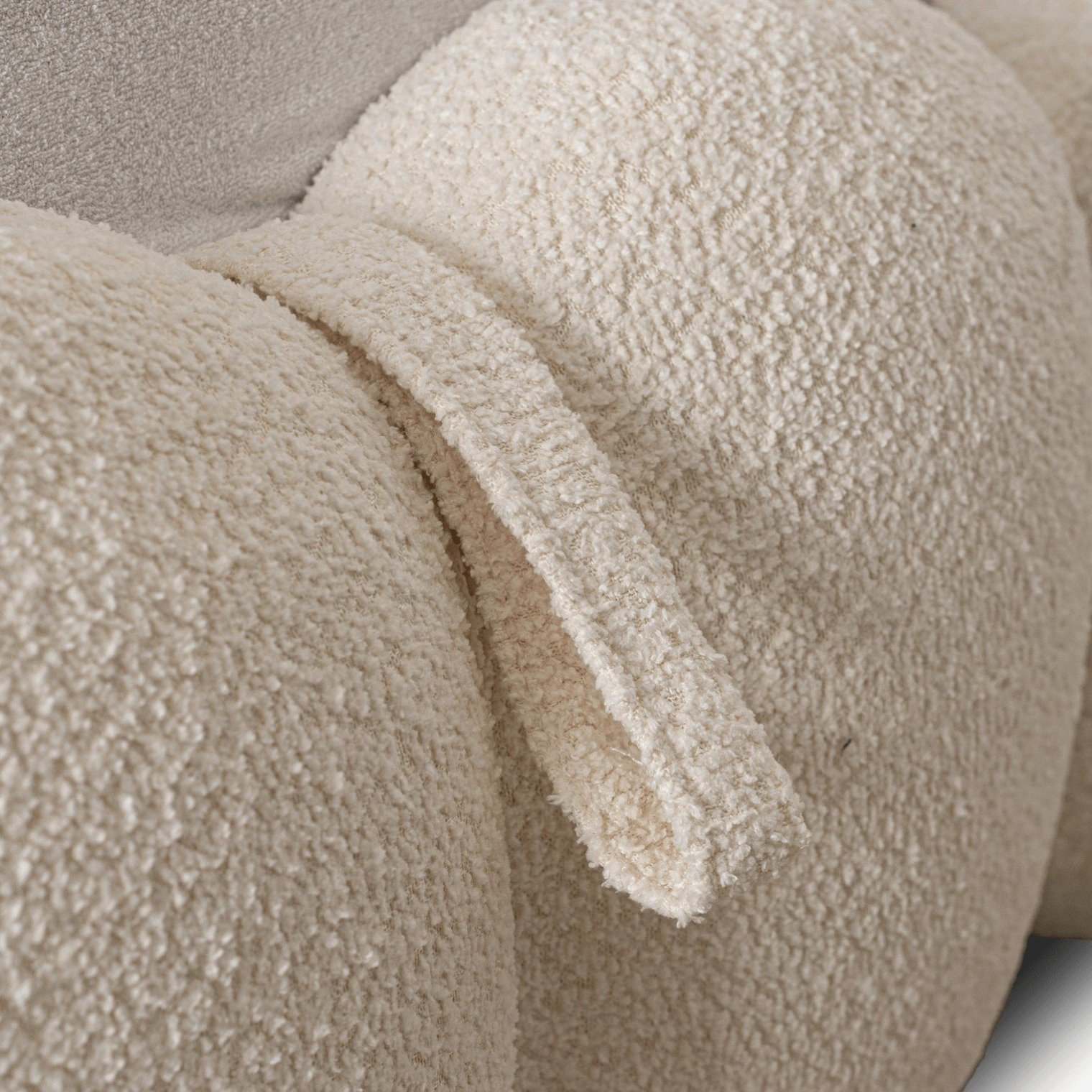 - Обивка из букле (овчины) — мягкая и приятная на ощупь, кремового оттенка, которая наполняет комнату теплом.