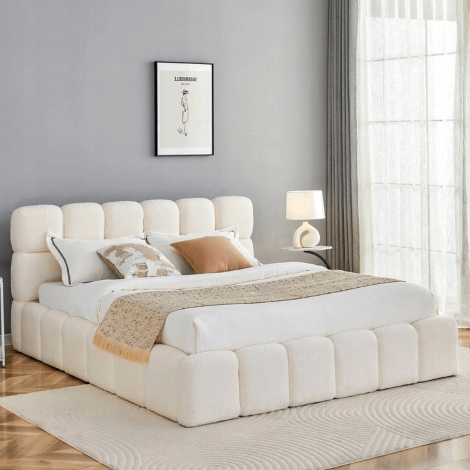 Кровать Murcja из ткани букле идеально подходит для любителей сдержанного стиля и натуральных акцентов. Мягкая текстура, кремовый оттенок и практичность превращают каждый вечер в расслабляющий ритуал.