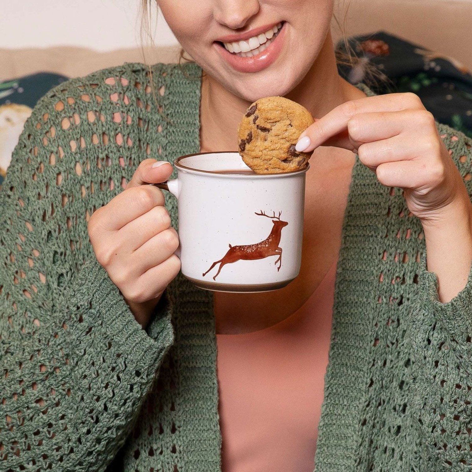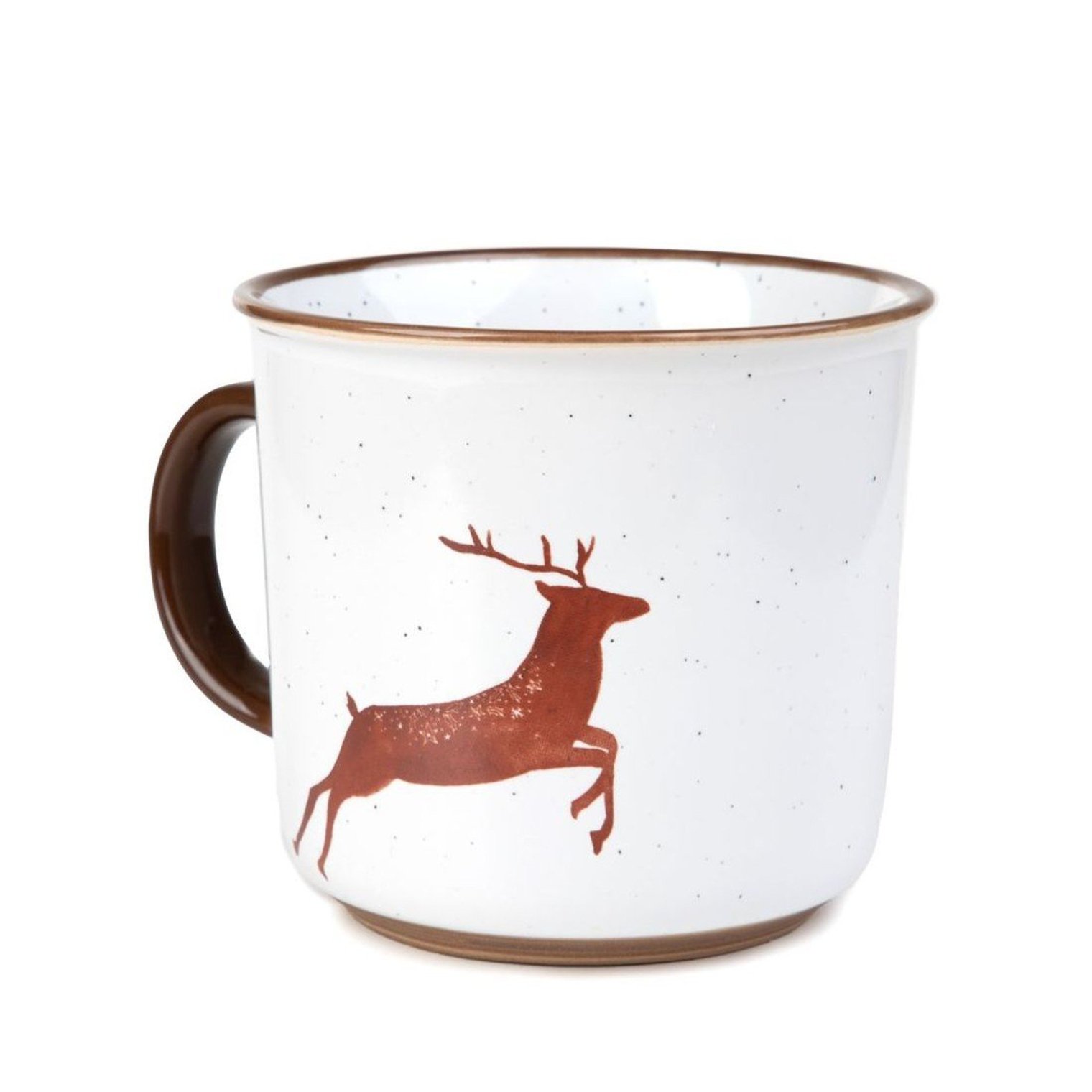 Белая кружка ERVIK с изображением бегущего коричневого оленя — очаровательный и ностальгический выбор, который добавит праздничной атмосферы вашему ежедневному чаепитию или чаепитию.