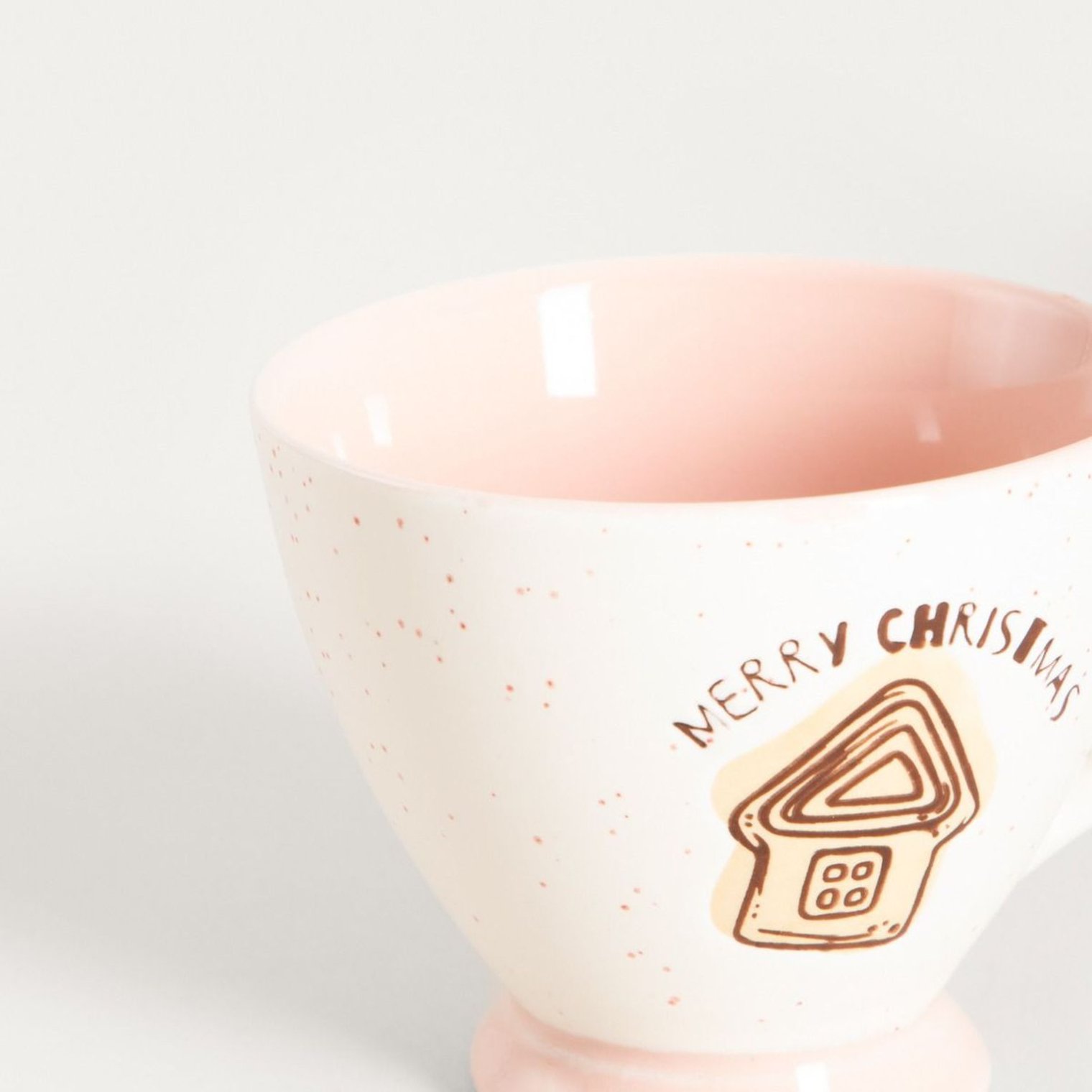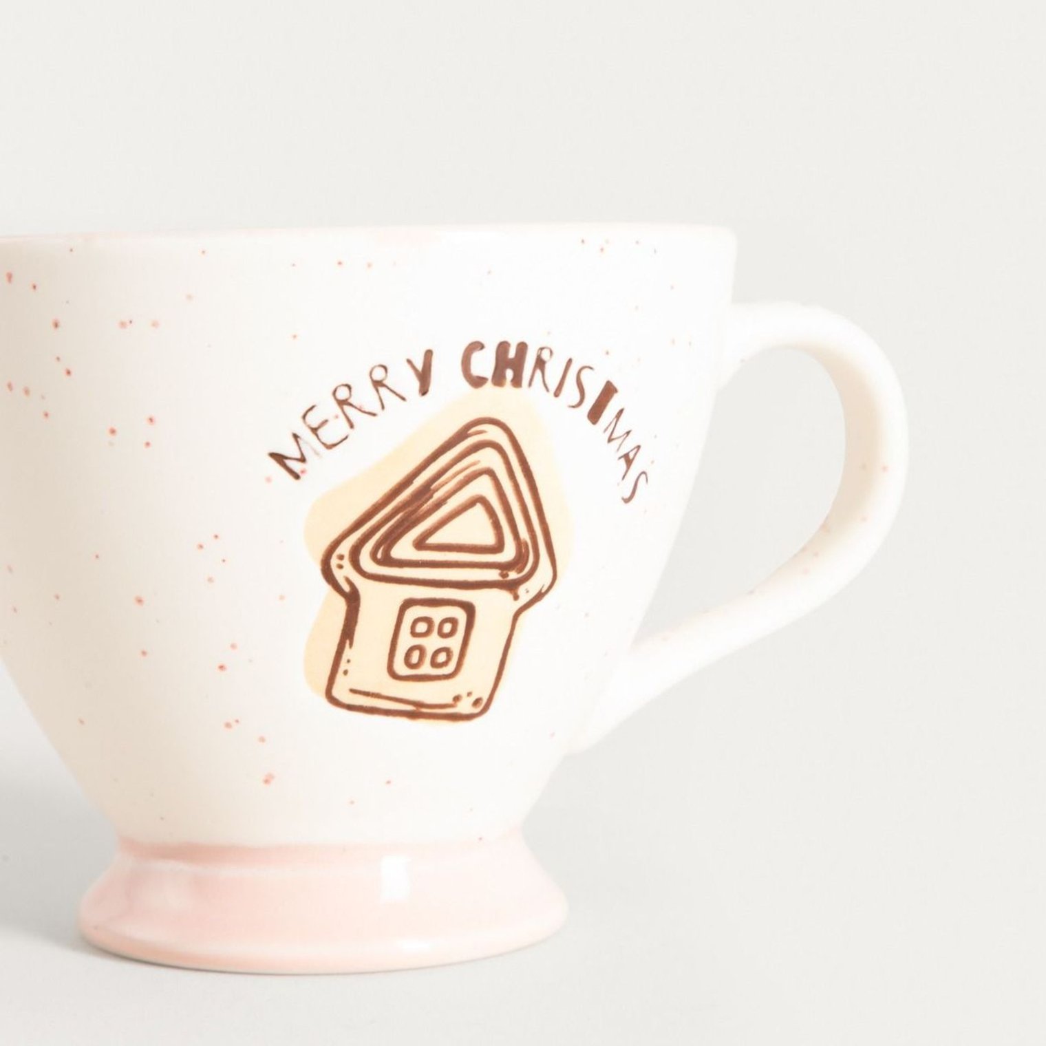 Эта фарфоровая кружка бело-розового цвета украшена изображением пряничного домика и надписью «Merry Christmas». Она идеально подойдёт для горячего напитка, который согреет вас зимним вечером. Эта рождественская кружка также станет отличным подарком близкому человеку.