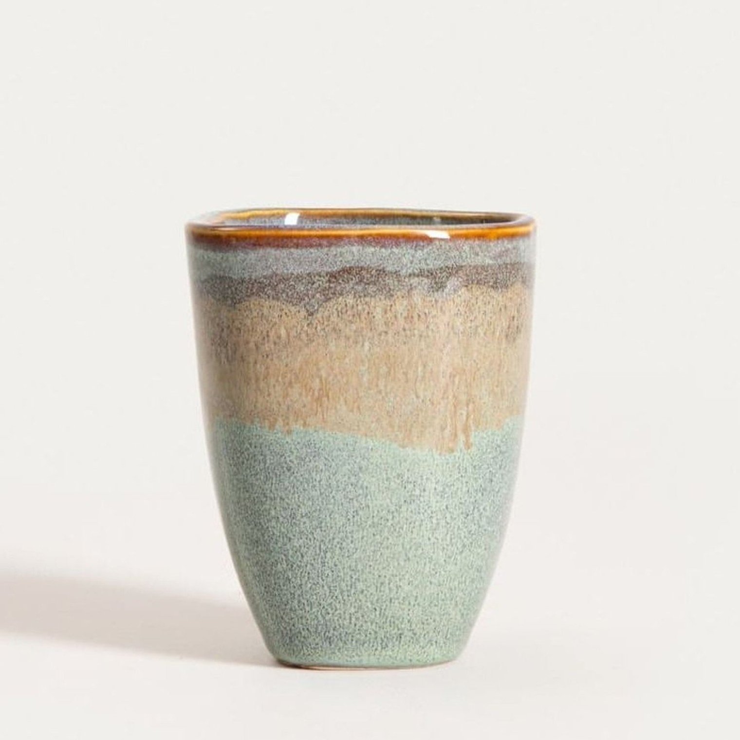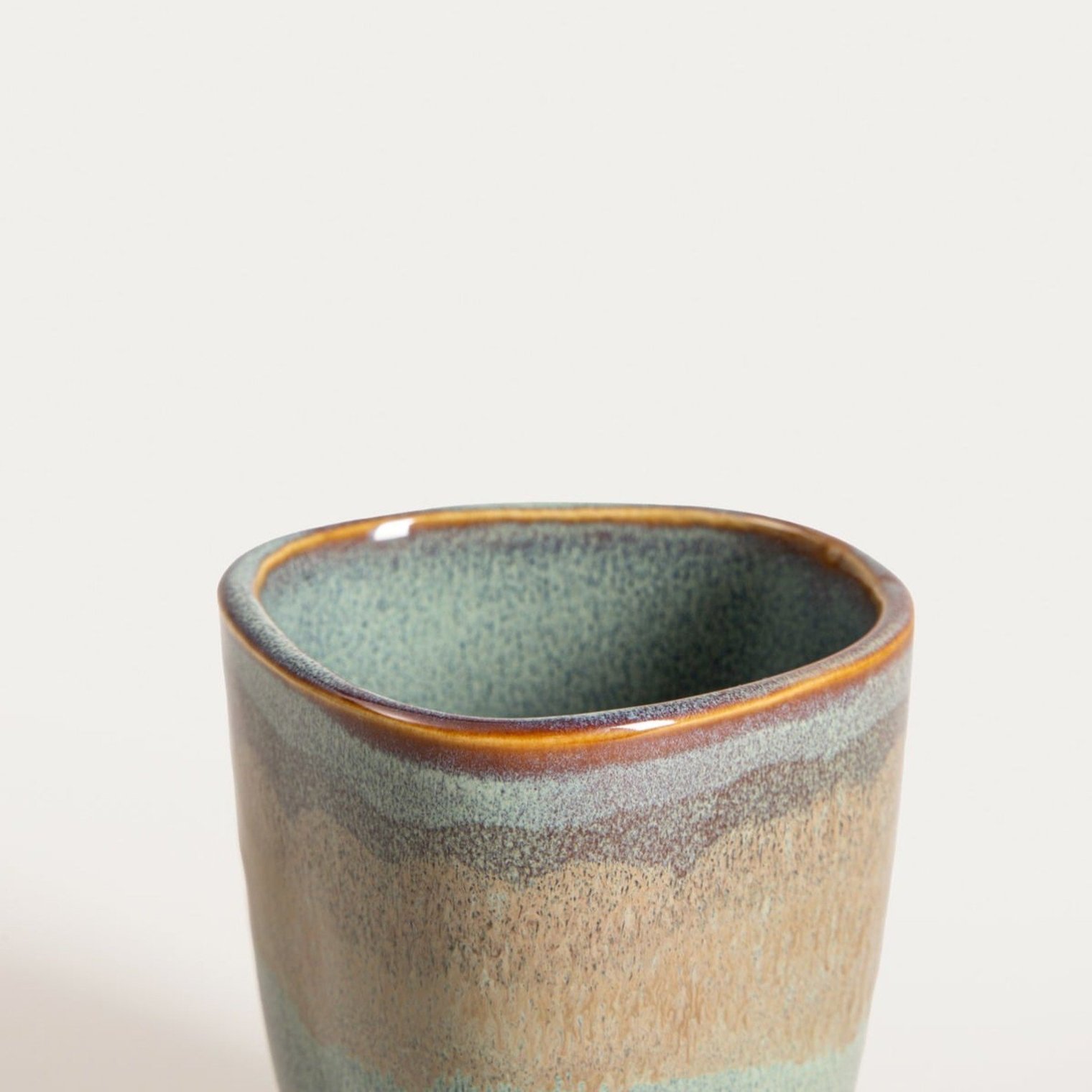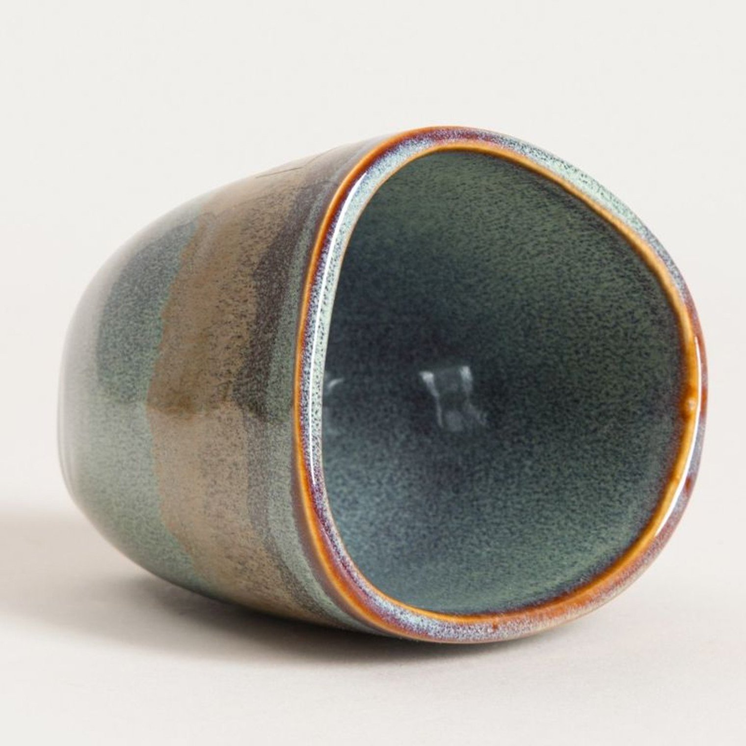 Кружка без ручки, синяя с бежевой полосой, 0,2 л.