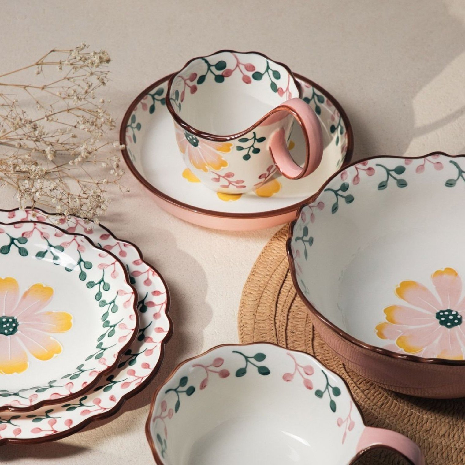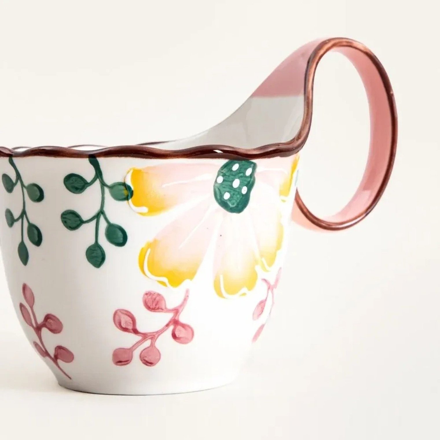 Кружка NOYA очаровывает своим художественным узором и мягкой, округлой формой. Нежные цветочные мотивы в сочетании с теплыми цветами создают гармоничное целое, привлекая взгляд и добавляя изюминку сервировке стола. Большая ручка обеспечивает удобный захват, что делает ее легкой в ежедневном использовании. Эта кружка органично вписывается в повседневные ритуалы и располагает к короткому перерыву наедине с собой.