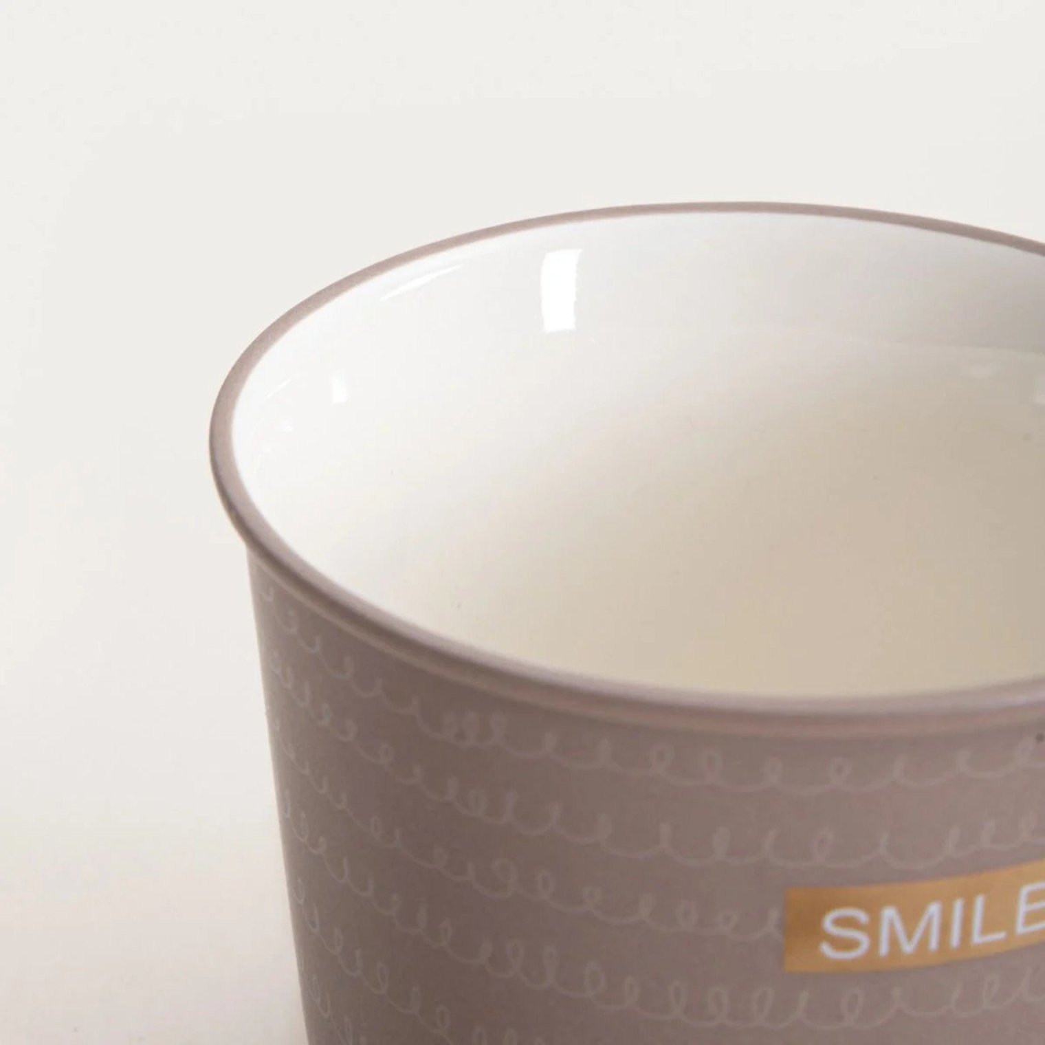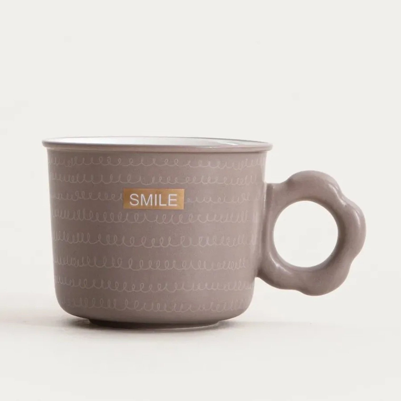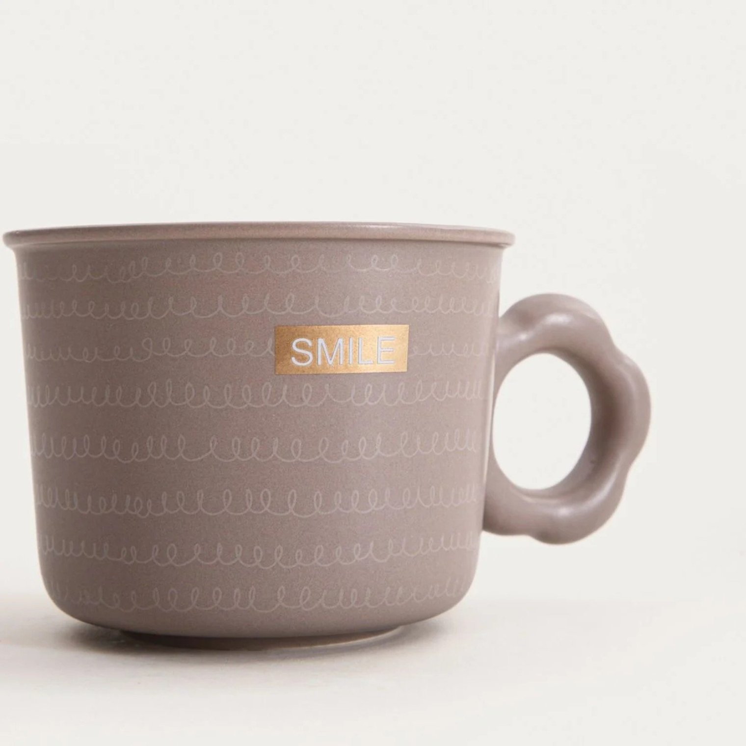 Серая кружка TODIL очаровывает своей простотой и спокойным характером, идеально вписываясь в повседневные ритуалы. Сдержанные цвета создают гармоничный фон для моментов с любимым напитком в любое время суток. Ненавязчивая надпись «SMILE» добавляет легкий, позитивный оттенок, а уникальная форма ручки привлекает внимание и отличает кружку от классических моделей.