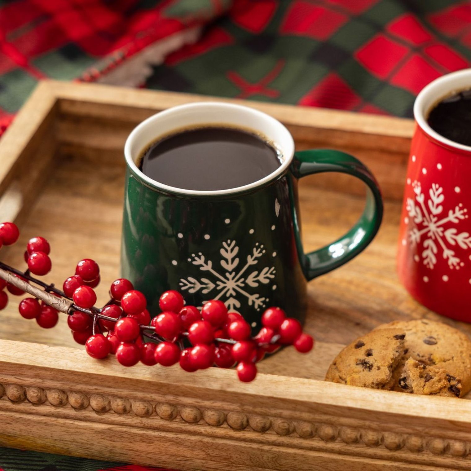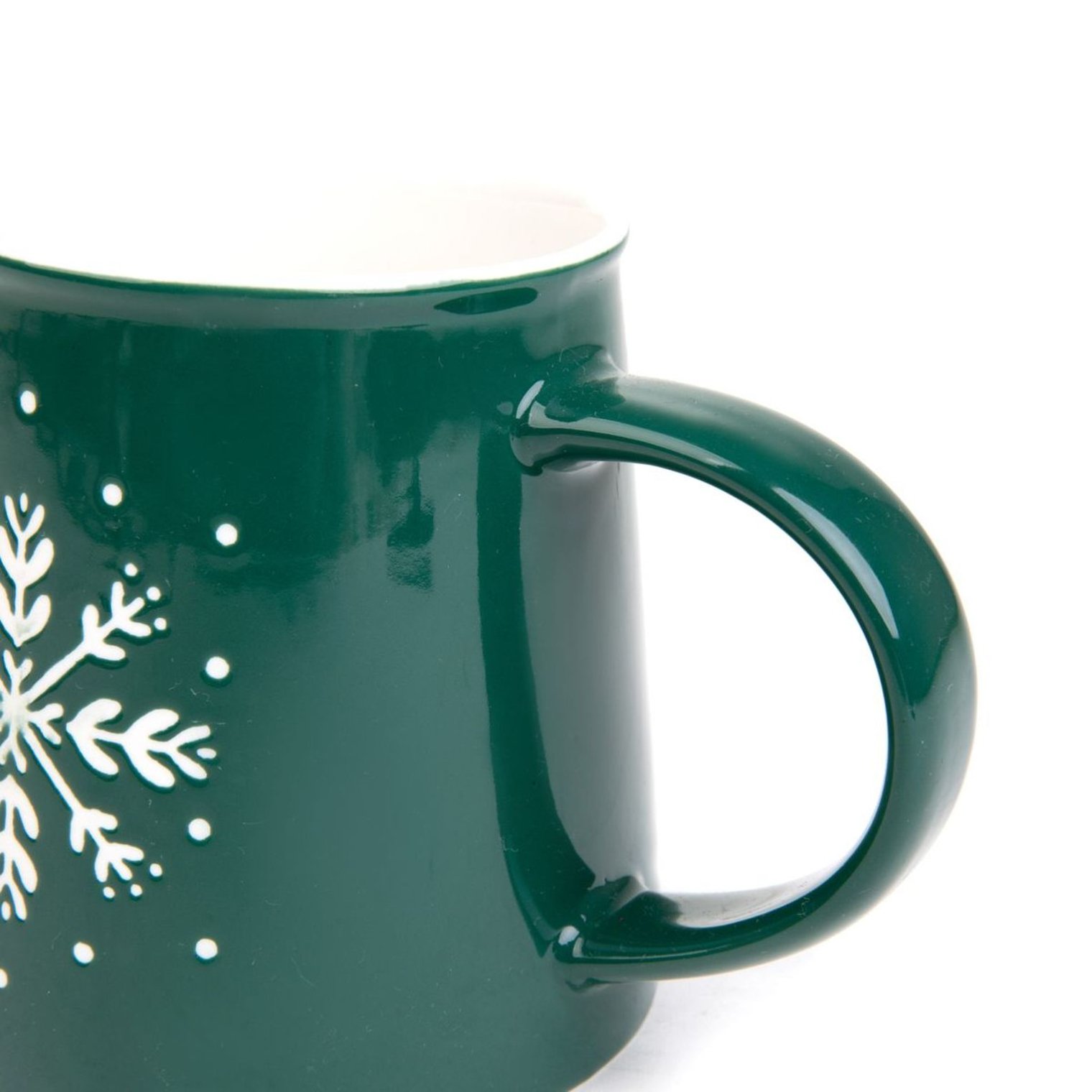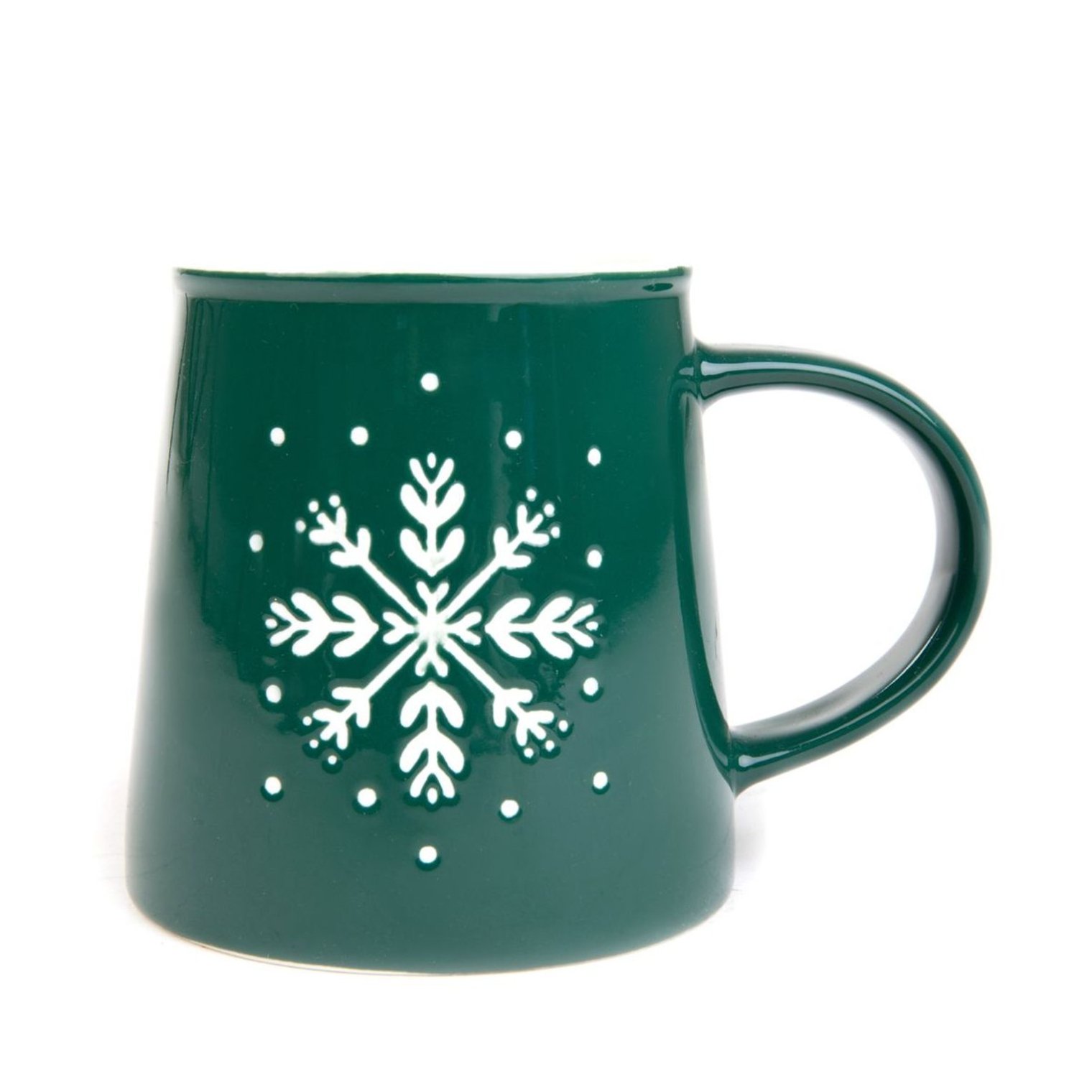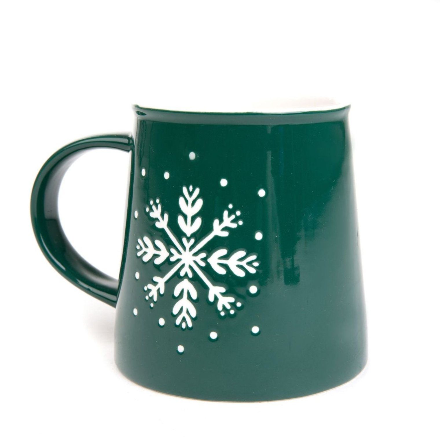 Красивая кружка TRINKIE функциональна и идеально подходит для горячих напитков в холодные дни. Белая внутренняя часть создаёт элегантный контраст, а трапециевидная форма — эстетичный элемент, привлекающий внимание. Снежинка на зелёном фоне — дополнительная деталь, придающая кружке неповторимый праздничный шарм, идеально подходящая для рождественских праздников.