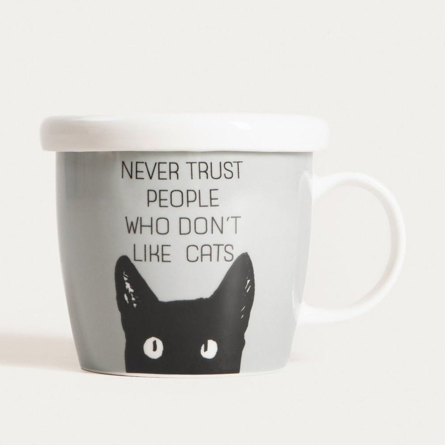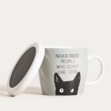 Кружка с крышкой и изображением черной кошки, 0,3 л.