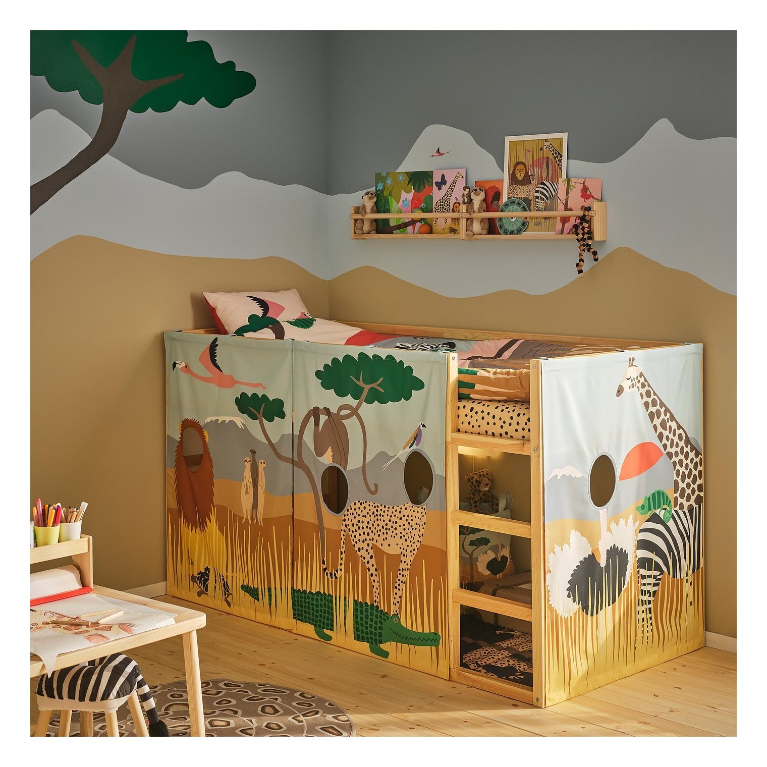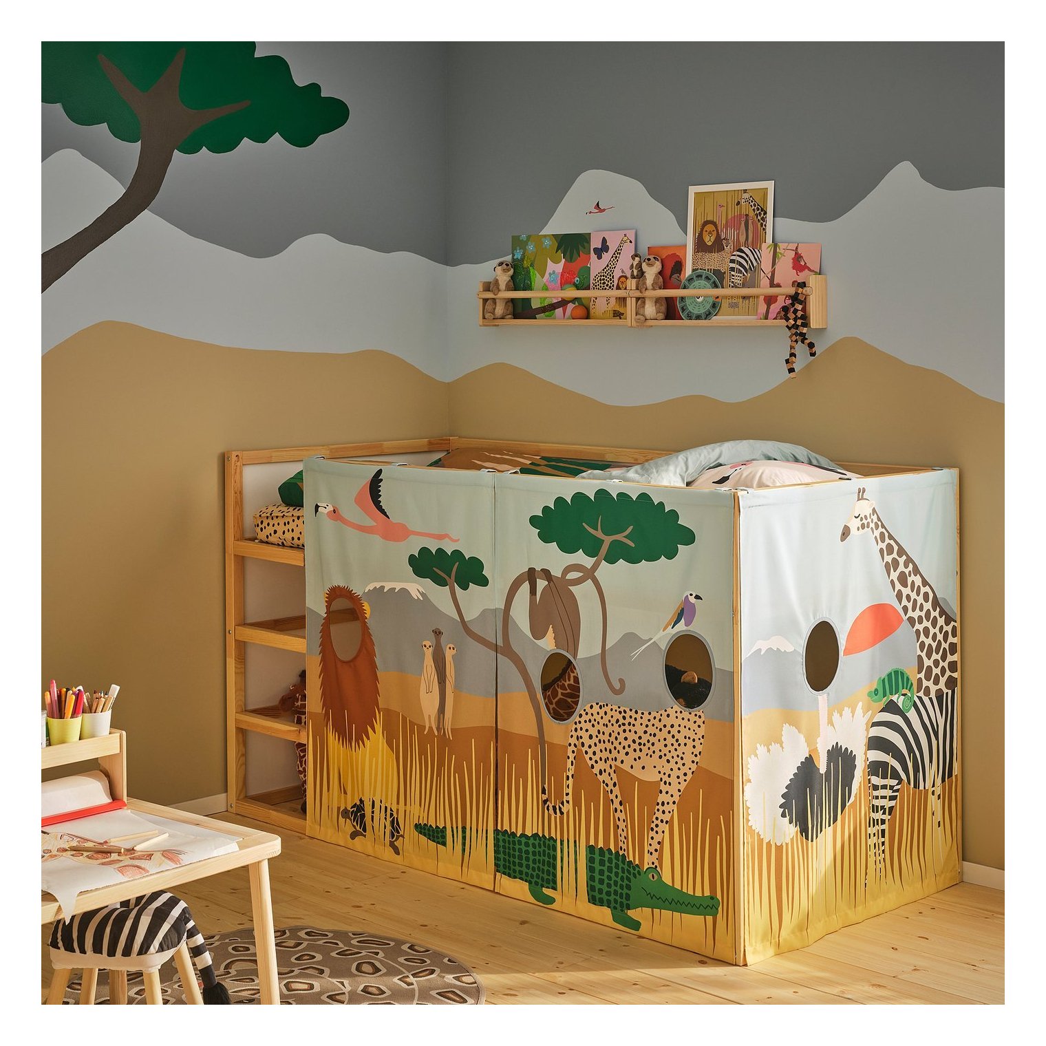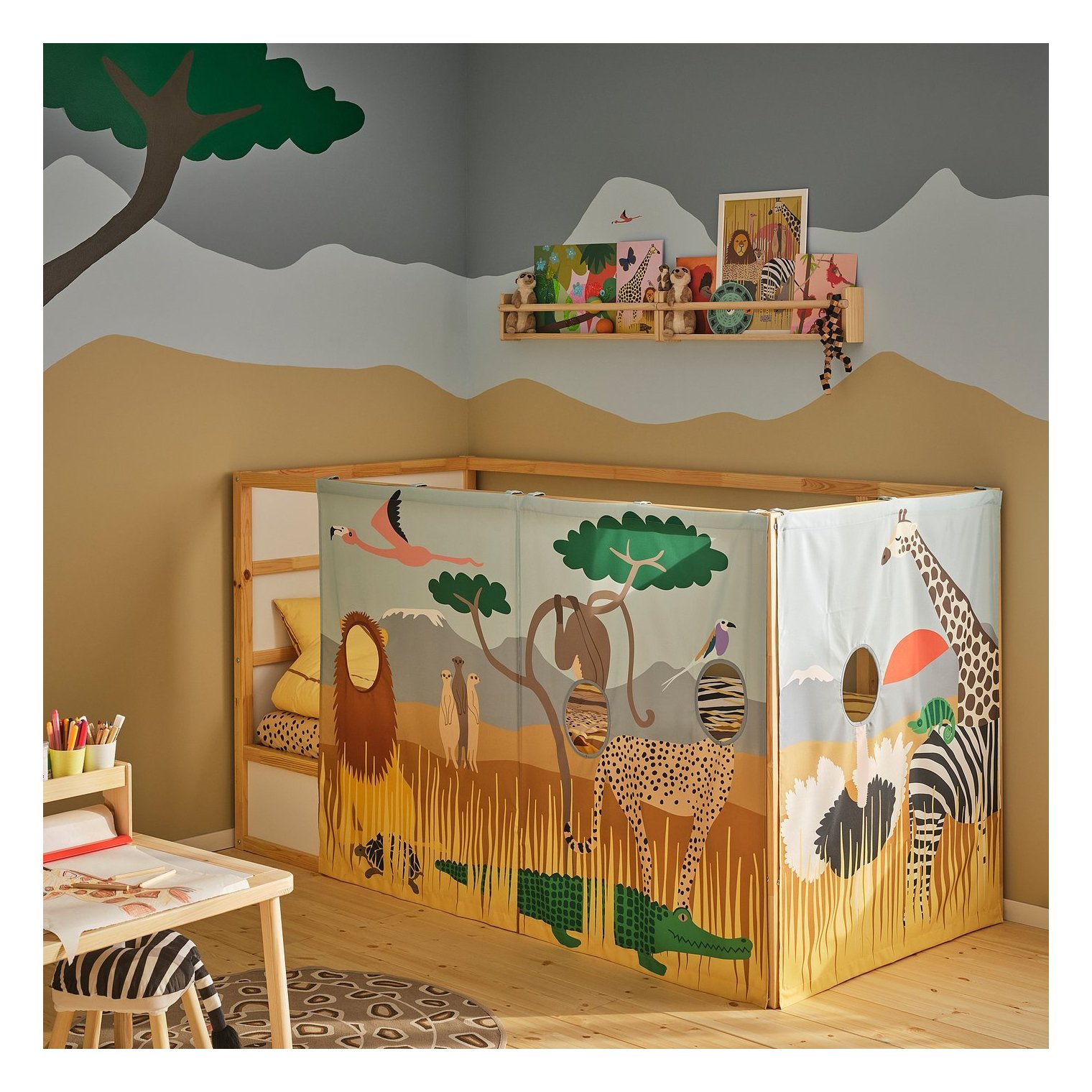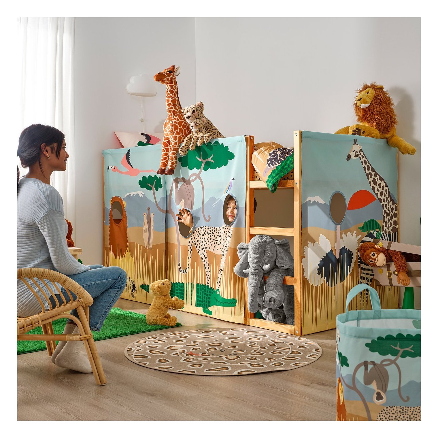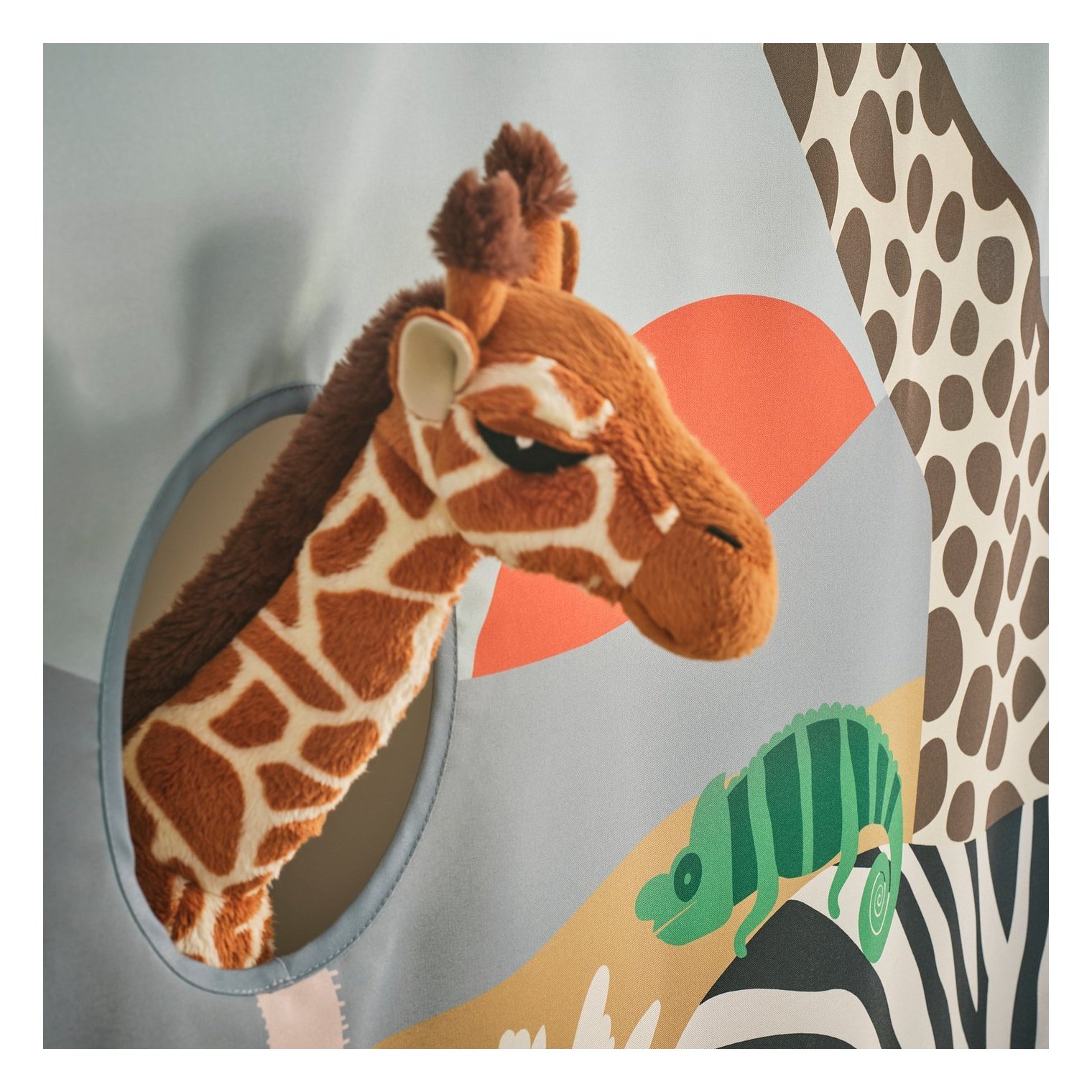 Когда придет время быстро убраться или сделать перерыв в игре, занавеску можно легко оттянуть в сторону, сдвинув металлические крючки.